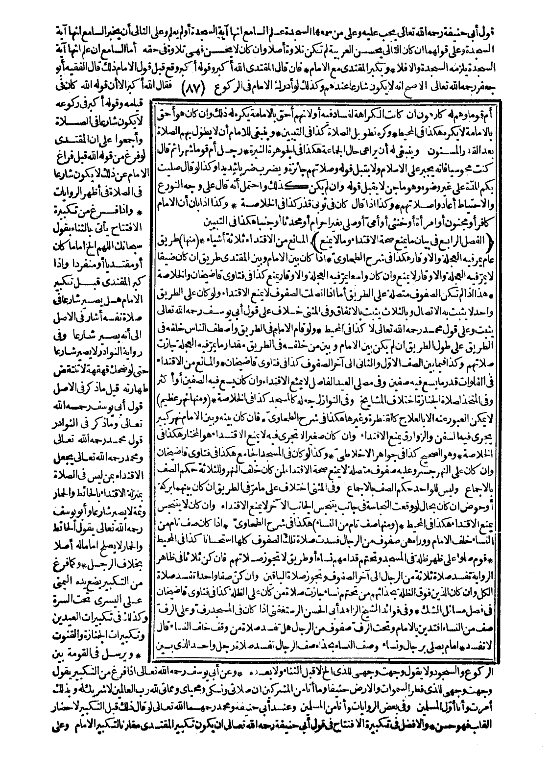 وَلَوْ قَامَ الْإِمَامُ فِي الطَّرِيقِ وَاصْطَفَّ النَّاسُ خَلْفَهُ فِي الطَّرِيقِ عَلَى طُولِ الطَّرِيقِ إنْ لَمْ يَكُنْ بَيْنَ الْإِمَامِ وَبَيْنَ مَنْ خَلْفَهُ فِي الطَّرِيقِ مِقْدَارُ مَا يَمُرُّ فِيهِ الْعَجَلَةُ جَازَتْ صَلَاتُهُمْ وَكَذَا فِيمَا بَيْنَ الصَّفِّ الْأَوَّلِ وَالثَّانِي إلَى آخِرِ الصُّفُوفِ. كَذَا فِي فَتَاوَى قَاضِي خَانْ.