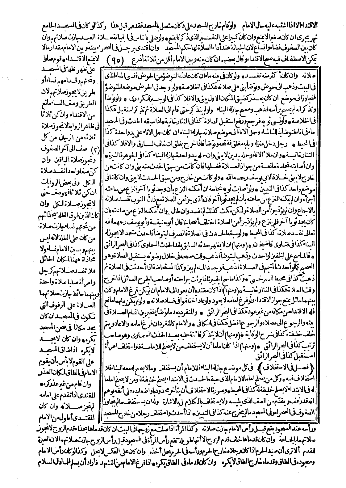 (وَمِنْهَا) إذَا كَانَ مُقْتَدِيًا أَنْ يَعُودَ إلَى الْإِمَامِ إنْ لَمْ يَكُنْ فَرَغَ الْإِمَامُ وَكَانَ بَيْنَهُمَا حَائِلٌ يَمْنَعُ جَوَازَ الِاقْتِدَاءِ وَلَوْ فَرَغَ إمَامُهُ لَا يَعُودُ وَلَوْ عَادَ اخْتَلَفُوا فِي فَسَادِ صَلَاتِهِ وَلَوْ لَمْ يَكُنْ بَيْنَهُمَا مَانِعٌ فَلَهُ الِاقْتِدَاءُ مِنْ مَكَانِهِ مِنْ غَيْرِ عَوْدٍ. هَكَذَا فِي الْبَحْرِ الرَّائِقِ وَالْمُنْفَرِدُ بَعْدَ مَا تَوَضَّأَ يَتَخَيَّرُ بَيْنَ إتْمَامِ الصَّلَاةِ فِي بَيْتِهِ وَالرُّجُوعِ إلَى مُصَلَّاهُ وَالرُّجُوعُ أَفْضَلُ. هَكَذَا فِي الْكَافِي وَالْإِمَامُ كَالْمُنْفَرِدِ إنْ فَرَغَ إمَامُهُ وَإِلَّا عَادَ وَيُتِمُّ خَلْفَ خَلِيفَتِهِ. كَذَا فِي شَرْحِ الْوِقَايَةِ.