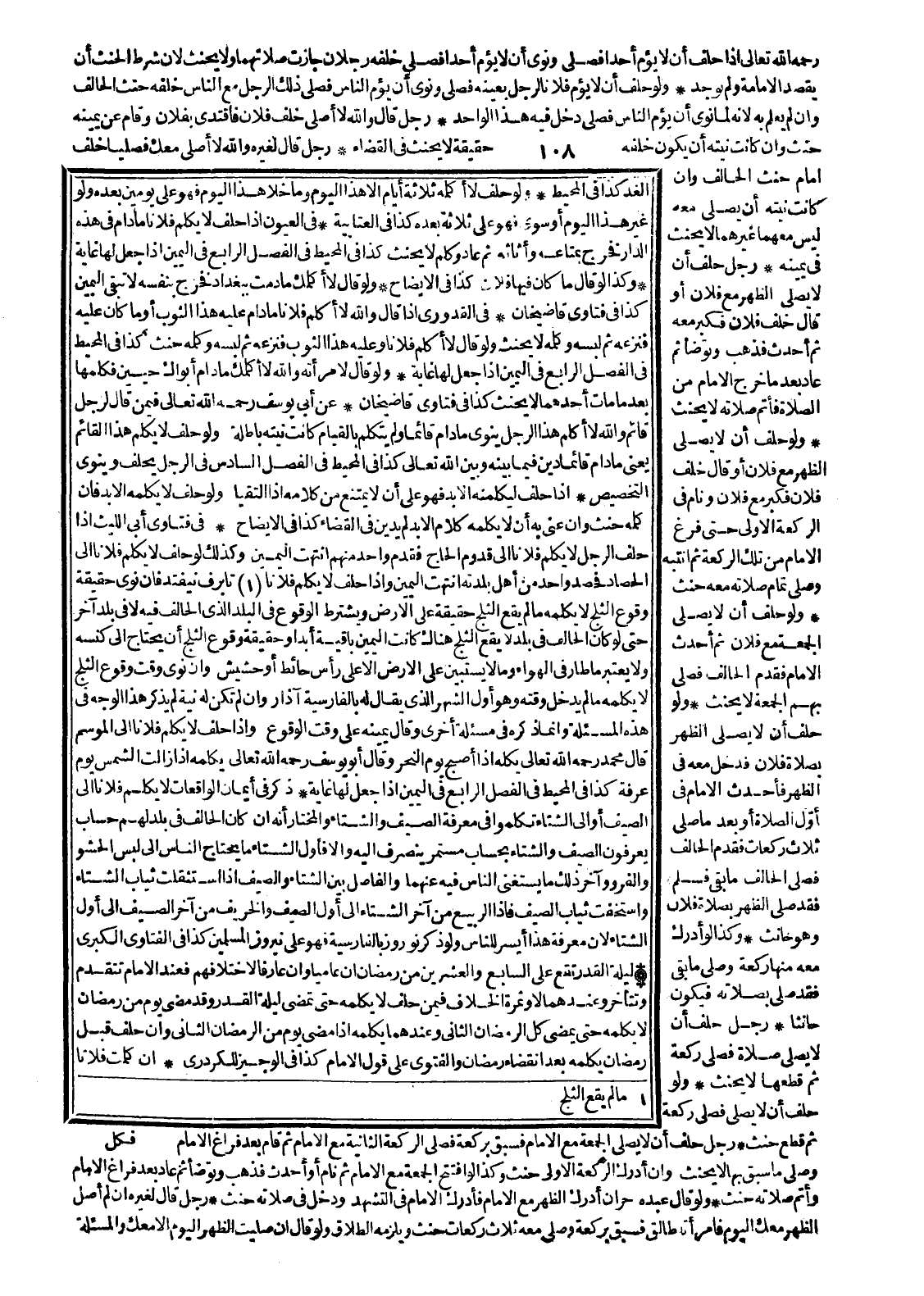 فِي فَتَاوَى أَبِي اللَّيْثِ إذَا حَلَفَ الرَّجُلُ لَا يُكَلِّمَ فُلَانًا إلَى قُدُومِ الْحَاجِّ فَقَدِمَ وَاحِدٌ مِنْهُمْ انْتَهَتْ الْيَمِينُ وَكَذَلِكَ لَوْ حَلَفَ لَا يُكَلِّمُ فُلَانًا إلَى الْحَصَادِ فَحَصَدَ وَاحِدٌ مِنْ أَهْلِ بَلْدَتِهِ انْتَهَتْ الْيَمِينُ وَإِذَا حَلَفَ لَا يُكَلِّمُ فُلَانًا تابرف نيفتد فَإِنْ نَوَى حَقِيقَةَ وُقُوعِ الثَّلْجِ لَا يُكَلِّمُهُ مَا لَمْ يَقَعْ الثَّلْجُ حَقِيقَةً عَلَى الْأَرْضِ وَيُشْتَرَطُ الْوُقُوعُ فِي الْبَلَدِ الَّذِي الْحَالِفُ فِيهِ لَا فِي بَلَدٍ آخَرَ حَتَّى لَوْ كَانَ الْحَالِفُ فِي بَلَدٍ لَا يَقَعُ الثَّلْجُ هُنَاكَ كَانَتْ الْيَمِينُ بَاقِيَةً أَبَدًا وَحَقِيقَةُ وُقُوعِ الثَّلْجِ أَنْ يَحْتَاجَ إلَى كَنْسِهِ وَلَا يُعْتَبَرُ مَا طَارَ فِي الْهَوَاءِ وَمَا لَا يَسْتَبِينُ عَلَى الْأَرْضِ إلَّا عَلَى رَأْسِ حَائِطٍ، أَوْ حَشِيشٍ وَإِنْ نَوَى وَقْتَ وُقُوعِ الثَّلْجِ لَا يُكَلِّمُهُ مَا لَمْ يَدْخُلْ وَقْتُهُ وَهُوَ أَوَّلُ الشَّهْرِ الَّذِي يُقَالُ لَهُ بِالْفَارِسِيَّةِ: آذار وَإِنْ لَمْ تَكُنْ لَهُ نِيَّةٌ لَمْ يَذْكُرْ هَذَا الْوَجْهَ فِي هَذِهِ الْمَسْأَلَةِ وَإِنَّمَا ذَكَرَهُ فِي مَسْأَلَةٍ أُخْرَى وَقَالَ: يَمِينُهُ عَلَى وَقْتِ الْوُقُوعِ وَإِذَا حَلَفَ لَا يُكَلِّمُ فُلَانًا إلَى الْمَوْسِمِ قَالَ مُحَمَّدٌ - رَحِمَهُ اللَّهُ تَعَالَى - يُكَلِّمُهُ إذَا أَصْبَحَ يَوْمَ النَّحْرِ وَقَالَ أَبُو يُوسُفَ - رَحِمَهُ اللَّهُ تَعَالَى - إذَا زَالَتْ الشَّمْسُ يَوْمَ عَرَفَةَ، كَذَا فِي الْمُحِيطِ فِي الْفَصْلِ الرَّابِعِ فِي الْيَمِينِ إذَا جَعَلَ لَهَا غَايَةً.