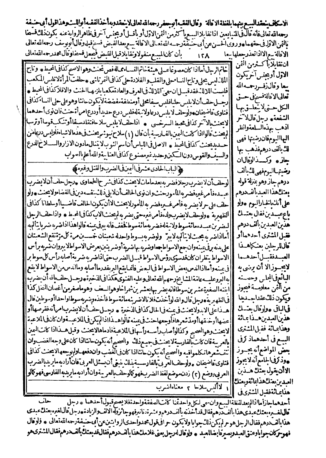 وَلَوْ حَلَفَ الْعَرَبِيُّ بِالْفَارِسِيَّةِ بِذَلِكَ يَنْبَغِي أَنْ يُسْأَلَ الْعَرَبِيُّ فَإِنْ أَرَادَ بِهِ مَا يُرِيدُ بِالضَّرْبِ الْعَرَبِيِّ وَوَضَعَ زدن مَوْضِعَ لَفْظِ الضَّرْبِ فَهُوَ كَمَا لَوْ حَلَفَ بِالْعَرَبِيَّةِ وَإِنْ أَرَادَ بِهِ مَا يُرِيدُ بِهِ الْفَارِسِيُّ فَهُوَ كَمَا لَوْ