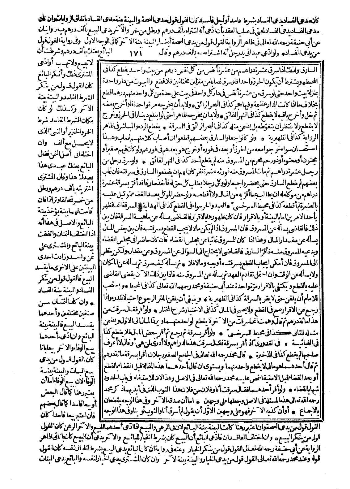 قَالَ مُحَمَّدٌ - رَحِمَهُ اللَّهُ تَعَالَى - فِي الْجَامِعِ الصَّغِيرِ رَجُلَانِ أَقَرَّا بِسَرِقَةِ مِائَةِ دِرْهَمٍ ثُمَّ قَالَ أَحَدُهُمَا هُوَ مَالِي لَا يُقْطَعُ، وَاحِدٌ مِنْهُمَا، وَيَسْتَوِي إنْ قَالَ أَحَدُهُمَا هَذِهِ الْمَقَالَةَ قَبْلَ الْقَضَاءِ بِالْقَطْعِ، أَوْ بَعْدَ الْقَضَاءِ قَبْلَ الِاسْتِيفَاءِ نَصَّ عَلَيْهِ مُحَمَّدٌ - رَحِمَهُ اللَّهُ تَعَالَى - فِي الْأَصْلِ، وَهَذَا؛ لِأَنَّ لِلِاسْتِيفَاءِ فِي بَابِ الْحُدُودِ شَبَهًا بِالْقَضَاءِ.