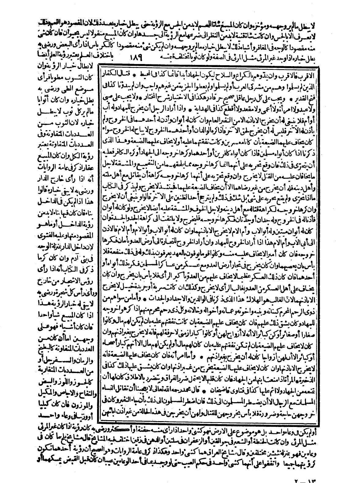 وَإِذَا أَرَادَ الرَّجُلُ أَنْ يَخْرُجَ لِلْجِهَادِ، وَلَهُ أَبٌ أَوْ أُمٌّ فَلَا يَنْبَغِي لَهُ أَنْ يَخْرُجَ إلَّا بِإِذْنِهِ إلَّا مِنْ النَّفِيرِ الْعَامِّ وَإِنْ كَانَ لَهُ أَبَوَانِ، وَأَذِنَ لَهُ أَحَدُهُمَا فِي الْخُرُوجِ، وَلَمْ يَأْذَنْ لَهُ الْآخَرُ، فَلَيْسَ لَهُ أَنْ يَخْرُجَ لِحَقِّ الْآخَرِ، فَإِذَا كَرِهَ الْوَالِدَانِ أَوْ أَحَدُهُمَا: الْخُرُوجَ لَا يُبَاحُ لَهُ الْخُرُوجُ سَوَاءٌ كَانَ يَخَافُ عَلَيْهِمَا الضَّيْعَةَ بِأَنْ كَانَا مُعْسِرَيْنِ، وَكَانَتْ نَفَقَتُهُمَا عَلَيْهِ، أَوْ لَا يَخَافُ عَلَيْهِمَا الضَّيْعَةَ، وَهَذَا الَّذِي ذَكَرْنَا إذَا كَانَ أَبَوَاهُ مُسْلِمَيْنِ، فَإِذَا كَانَ أَبَوَاهُ كَافِرَيْنِ أَوْ أَحَدُهُمَا، وَكَرِهَا خُرُوجَهُ إلَى الْجِهَادِ أَوْ كَرِهَ الْكَافِرُ، فَعَلَيْهِ أَنْ يَتَحَرَّى فِي ذَلِكَ، فَإِنْ وَقَعَ تَحَرِّيهِ عَلَى أَنَّهُمَا إنَّمَا كَرِهَا خُرُوجَهُ مِمَّا يَلْحَقُهُمَا مِنْ التَّفْجِيعِ وَالْمَشَقَّةِ لِأَجْلِ مَا يَخَافَانِ عَلَيْهِ مِنْ الْقَتْلِ لَا يَخْرُجُ وَإِنْ وَقَعَ تَحَرِّيهِ عَلَى أَنَّهُمَا كَرِهَا خُرُوجَهُ كَرَاهَةَ أَنْ يُقَاتِلَ مَعَ أَهْلِ مِلَّتِهِ وَأَهْلِ دِينِهِ، فَلَهُ أَنْ يَخْرُجَ مِنْ غَيْرِ رِضَاهُمَا إلَّا أَنْ يَخَافَ الضَّيْعَةَ عَلَيْهِمَا، فَحِينَئِذٍ لَا يَخْرُجُ، وَلَمْ يَذْكُرْ فِي الْكِتَابِ مَا إذَا تَحَرَّى، وَلَمْ يَقَعْ تَحَرِّيهِ عَلَى شَيْءٍ بَلْ شَكَّ فِي ذَلِكَ، وَلَمْ يَتَرَجَّحْ أَحَدُ الظَّنَّيْنِ عَلَى الْآخَرِ قَالُوا: وَيَنْبَغِي أَنْ لَا يَخْرُجَ، وَإِنْ كَرِهَا خُرُوجَهُ لِكَرَاهَةِ قِتَالِهِ مَعَ أَهْلِ دِينِهِ، وَلِأَجْلِ الْخَوْفِ وَالْمَشَقَّةِ عَلَيْهِ أَيْضًا لَا يَخْرُجُ، وَلَوْ كَانَ لَهُ أَبَوَانِ، فَأَذِنَا لَهُ فِي الْخُرُوجِ وَلَهُ جَدَّانِ أَوْ جَدَّتَانِ، فَكَرِهَا خُرُوجَهُ فَلْيَخْرُجْ، وَلَا يَلْتَفِتْ إلَى كَرَاهَةِ الْجَدِّ وَالْجَدَّةِ وَإِنْ كَانَ لَهُ أَبَوَانِ مَيِّتَيْنِ وَلَهُ أَبُو الْأَبِ وَأُمُّ الْأُمِّ لَا يَخْرُجُ إلَّا بِإِذْنِهِمَا، وَإِنْ كَانَ لَهُ أَبُو الْأَبِ وَأَبُو الْأُمِّ وَأُمُّ الْأُمِّ، فَالْإِذْنُ إلَى أَبِي الْأَبِ وَأُمِّ الْأُمِّ هَذَا إذَا أَرَادَ الْخُرُوجَ لِلْجِهَادِ.