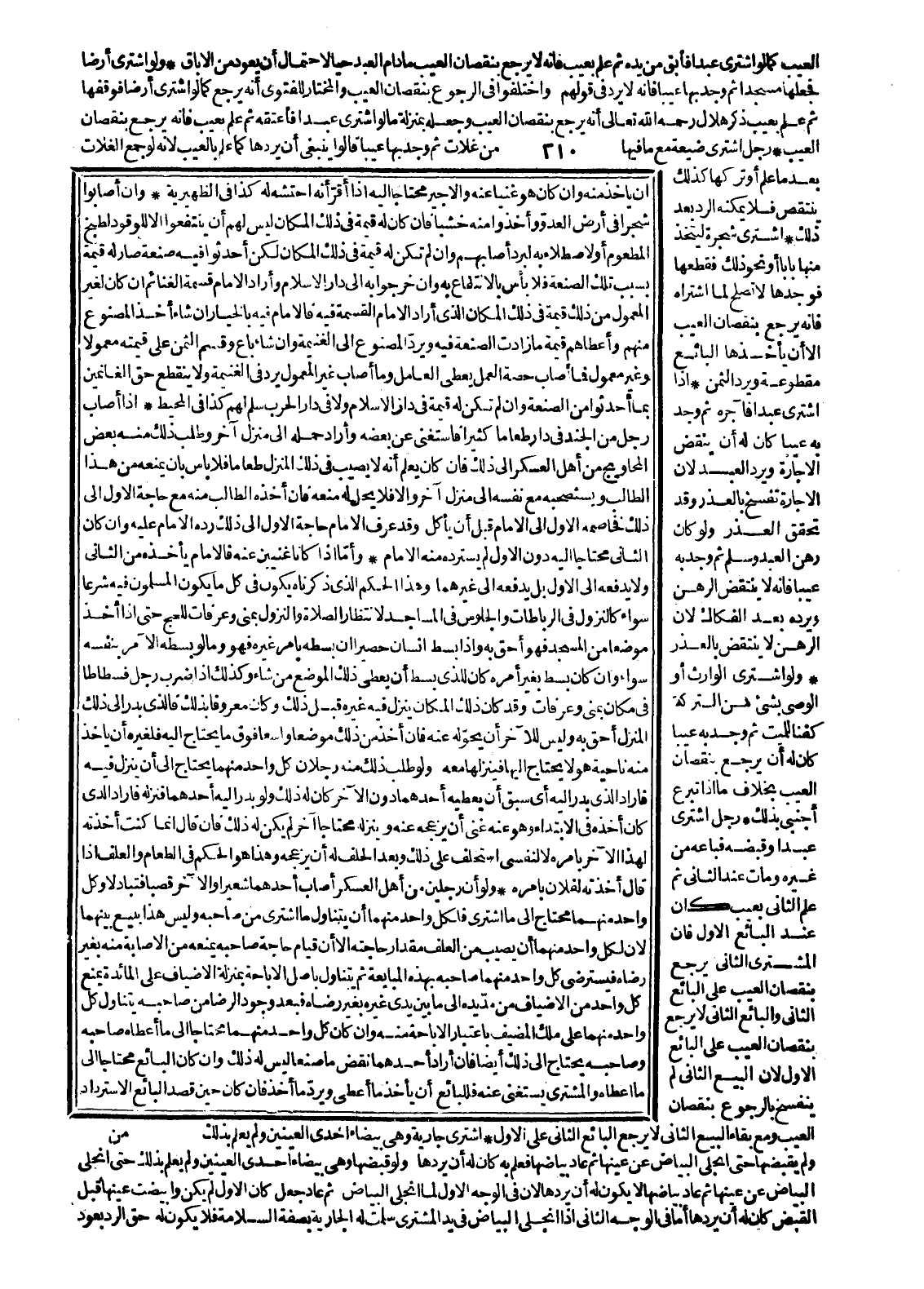 وَلَوْ أَنَّ رَجُلَيْنِ مِنْ أَهْلِ الْعَسْكَرِ أَصَابَ أَحَدُهُمَا شَعِيرًا وَالْآخَرُ قَصَبًا فَتَبَادَلَا وَكُلُّ وَاحِدٍ مِنْهُمَا مُحْتَاجٌ إلَى مَا اشْتَرَى فَلِكُلِّ وَاحِدٍ مِنْهُمَا أَنْ يَتَنَاوَلَ مَا اشْتَرَى مِنْ صَاحِبِهِ وَلَيْسَ هَذَا بَيْعٌ بَيْنَهُمَا؛ لِأَنَّ لِكُلِّ وَاحِدٍ مِنْهُمَا أَنْ يُصِيبَ مِنْ الْعَلَفِ مِقْدَارَ حَاجَتِهِ إلَّا أَنَّ قِيَامَ حَاجَةِ صَاحِبِهِ يَمْنَعُهُ مِنْ الْإِصَابَةِ مِنْهُ بِغَيْرِ رِضَاهُ فَيَسْتَرْضِي كُلُّ وَاحِدٍ مِنْهُمَا صَاحِبَهُ بِهَذِهِ الْمُبَايَعَةِ، ثُمَّ يَتَنَاوَلُ بِأَصْلِ الْإِبَاحَةِ بِمَنْزِلَةِ الْأَضْيَافِ عَلَى الْمَائِدَةِ يُمْنَعُ كُلُّ وَاحِدٍ مِنْ الْأَضْيَافِ مِنْ مَدِّ يَدِهِ إلَى مَا بَيْنَ يَدَيْ غَيْرِهِ بِغَيْرِ رِضَاهُ، فَبَعْدَ وُجُودِ الرِّضَا مِنْ صَاحِبِهِ يَتَنَاوَلُ كُلُّ وَاحِدٍ مِنْهُمَا عَلَى مِلْكِ الْمُضِيفِ بِاعْتِبَارِ الْإِبَاحَةِ مِنْهُ، وَإِنْ كَانَ كُلُّ وَاحِدٍ مِنْهُمَا مُحْتَاجًا إلَى مَا أَعْطَاهُ صَاحِبُهُ وَصَاحِبُهُ يَحْتَاجُ إلَى ذَلِكَ أَيْضًا، فَإِنْ أَرَادَ أَحَدُهُمَا نَقْضَ مَا صَنَعَهُ لَيْسَ لَهُ ذَلِكَ، وَإِنْ كَانَ الْبَائِعُ مُحْتَاجًا إلَى مَا أَعْطَاهُ وَالْمُشْتَرِي يَسْتَغْنِي عَنْهُ فَلِلْبَائِعِ أَنْ يَأْخُذَ مَا أَعْطَى وَيَرُدَّ مَا أَخَذَ، فَإِنْ كَانَ حِينَ قَصَدَ الْبَائِعُ الِاسْتِرْدَادَ