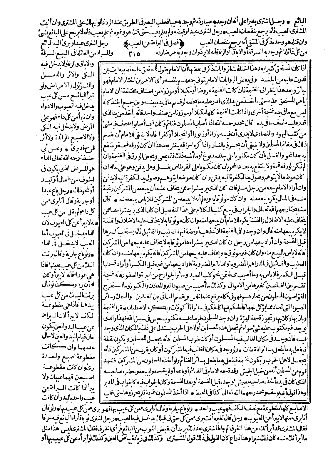 إذَا كَانَ الْمُسْتَحَقُّ كَثِيرًا بَعْدَ هَذَا اخْتَلَفَتْ الرِّوَايَاتُ ذُكِرَ فِي بَعْضِهَا أَنَّ الْإِمَامَ يَقُولُ لِلْمُسْتَحِقِّ عَلَيْهِ نَصِيبَهُ: ائْتِ بِمَنْ قَدَرْتَ عَلَيْهِ مِنْ الْجُنْدِ وَفِي بَعْضِ الرِّوَايَاتِ الْإِمَامُ يَتَوَلَّى جَمْعَهُمْ بِنَفْسِهِ، وَأَيَّ الْأَمْرَيْنِ اخْتَارَ الْإِمَامُ فَهُوَ جَائِزٌ، وَبَعْدَ هَذَا يُنْظَرُ إلَى الْغَنِيمَةِ، فَإِنْ كَانَتْ الْغَنِيمَةُ عُرُوضًا أَوْ مَكِيلًا أَوْ مَوْزُونًا مِنْ أَصْنَافٍ مُخْتَلِفَةٍ، فَإِنَّ الْإِمَامَ يَأْمُرُ الْمُسْتَحَقَّ عَلَيْهِ حَتَّى يَأْخُذَ مِنْ يَدِ الَّذِي قَدَرَ عَلَيْهِ مَا يَخُصُّهُ لَوْ قَسَّمَ مَا فِي يَدِهِ بَيْنَهُ وَبَيْنَ جَمِيعِ الْجُنْدِ كَأَنَّهُ لَيْسَ مَعَ مَا فِي يَدِهِ غَنِيمَةٌ أُخْرَى، وَإِذَا كَانَتْ الْغَنِيمَةُ كُلُّهَا مَكِيلًا أَوْ مَوْزُونًا مِنْ صِنْفٍ وَاحِدٍ، فَإِنَّهُ يَأْخُذُ مِنْ يَدِ الَّذِي قَدَرَ عَلَيْهِ نِصْفَ مَا فِي يَدِهِ قَالَ مُحَمَّدٌ - رَحِمَهُ اللَّهُ - إذَا أَصَابَ الْمُسْلِمُونَ غَنَائِمَ، وَكَانَ فِيمَا أَصَابُوا مُصْحَفٌ فِيهِ شَيْءٌ مِنْ كُتُبِ الْيَهُودِ وَالنَّصَارَى لَا يَدْرِي أَنَّ فِيهِ تَوْرَاةً أَوْ زَبُورًا أَوْ إنْجِيلًا أَوْ كُفْرًا، فَإِنَّهُ لَا يَنْبَغِي لِلْإِمَامِ أَنْ يُقَسِّمَ ذَلِكَ فِي مَغَانِمِ الْمُسْلِمِينَ، وَلَا يَنْبَغِي أَنْ يُحَرِّقَ بِالنَّارِ وَإِذَا كَرِهَ إحْرَاقَهُ يَنْظُرُ بَعْدَ هَذَا إنْ كَانَ لِوَرِقِهِ قِيمَةً، وَيُنْتَفَعُ بِهِ بَعْدَ الْمَحْوِ وَالْغَسْلِ بِأَنْ كَانَ مَكْتُوبًا عَلَى جِلْدٍ مَدْبُوغٍ أَوْ مَا أَشْبَهَ ذَلِكَ، فَإِنَّهُ يُمْحَى وَيُجْعَلُ الْوَرَقُ فِي الْغَنِيمَةِ، وَإِنْ لَمْ تَكُنْ لِوَرِقِهِ قِيمَةٌ، وَلَا يُنْتَفَعُ بِهِ بَعْدَ الْمَحْوِ بِأَنْ كَانَ مَكْتُوبًا عَلَى الْقِرْطَاسِ يُغْسَلُ وَهَلْ يُدْفَنُ وَهُوَ عَلَى حَالِهِ إنْ كَانَ مَوْضِعًا لَا يُتَوَهَّمُ وُصُولُ يَدِ الْكَفَرَةِ إلَيْهِ؟ يُدْفَنُ، وَإِنْ كَانَ مَوْضِعًا يُتَوَهَّمُ وُصُولُ يَدِ الْكَفَرَةِ إلَيْهِ لَا يُدْفَنُ وَإِنْ أَرَادَ الْإِمَامُ بَيْعَهُ مِنْ رَجُلٍ مُسْلِمٍ، فَإِنْ كَانَ الَّذِي يُرِيدُ شِرَاءَهُ مِمَّنْ يُخَافُ عَلَيْهِ أَنْ يَبِيعَهُ مِنْ الْمُشْرِكِينَ رَغْبَةً مِنْهُ فِي الْمَالِ يُكْرَهُ بَيْعُهُ مِنْهُ وَإِنْ كَانَ مَوْثُوقًا بِهِ، وَيَعْلَمُ أَنَّهُ لَا يَبِيعَهُ مِنْ الْمُشْرِكِينَ، فَلَا بَأْسَ بِبَيْعِهِ مِنْهُ.