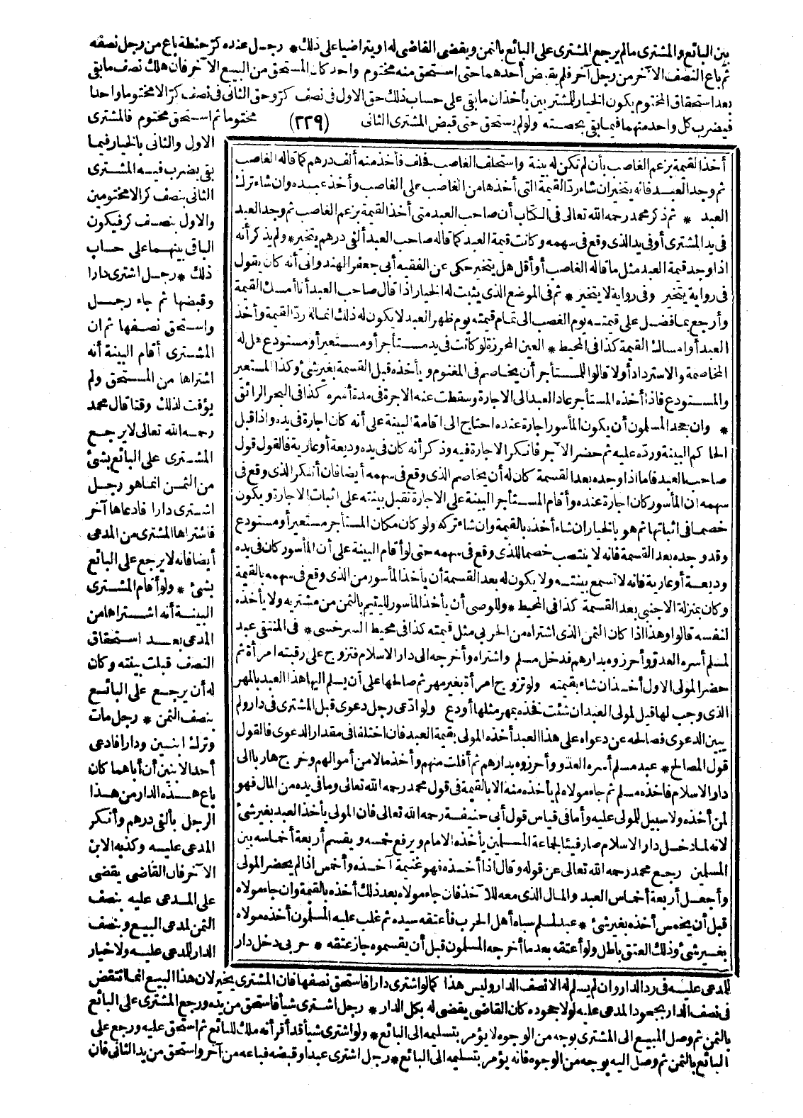 عَبْدٌ مُسْلِمٌ أَسَرَهُ الْعَدُوُّ، وَأَحْرَزُوهُ بِدَارِهِمْ، ثُمَّ أَفْلَتَ مِنْهُمْ، وَأَخَذَ مَالًا مِنْ أَمْوَالِهِمْ، وَخَرَجَ هَارِبًا إلَى دَارِ الْإِسْلَامِ، فَأَخَذَهُ مُسْلِمٌ، ثُمَّ جَاءَ مَوْلَاهُ لَمْ يَأْخُذْهُ مِنْهُ إلَّا بِالْقِيمَةِ فِي قَوْلِ مُحَمَّدٍ - رَحِمَهُ اللَّهُ تَعَالَى - وَمَا فِي يَدِهِ مِنْ الْمَالِ فَهُوَ لِمَنْ أَخَذَهُ، وَلَا سَبِيلَ لِلْمَوْلَى عَلَيْهِ، أَوَمَا فِي قِيَاسِ قَوْلِ أَبِي حَنِيفَةَ - رَحِمَهُ اللَّهُ تَعَالَى - فَإِنَّ الْمَوْلَى يَأْخُذُ الْعَبْدَ بِغَيْرِ شَيْءٍ؛ لِأَنَّهُ لَمَّا دَخَلَ دَارَ الْإِسْلَامِ صَارَ فَيْئًا لِجَمَاعَةِ الْمُسْلِمِينَ يَأْخُذُهُ الْإِمَامُ، وَيَرْفَعُ خُمُسَهُ وَيُقَسِّمُ أَرْبَعَةَ أَخْمَاسِهِ بَيْنَ الْمُسْلِمِينَ رَجَعَ مُحَمَّدٌ - رَحِمَهُ اللَّهُ تَعَالَى - عَنْ قَوْلِهِ وَقَالَ: إذَا أَخَذَهُ، فَهُوَ غَنِيمَةُ آخِذِهِ وَأُخْمِسُ إذَا لَمْ يَحْضُرْ الْمَوْلَى، وَأَجْعَلُ أَرْبَعَةَ أَخْمَاسِ الْعَبْدِ وَالْمَالِ الَّذِي مَعَهُ لِلْآخِذِ، فَإِنْ جَاءَ مَوْلَاهُ بَعْدَ ذَلِكَ أَخَذَهُ بِالْقِيمَةِ وَإِنْ جَاءَ مَوْلَاهُ قَبْلَ أَنْ يُخَمِّسَ أَخَذَهُ بِغَيْرِ شَيْءٍ.