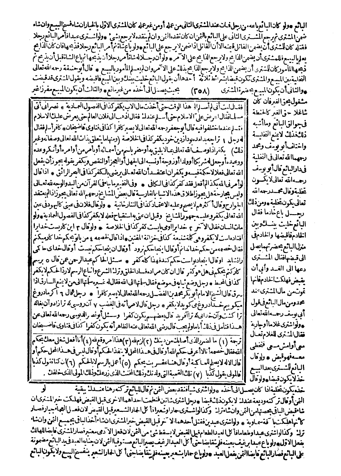 رَجُلٌ قَالَ لِامْرَأَتِهِ فِي الْغَضَبِ: آن روسبي كه ترازادو آن بغاكه تراكشت وَآن خدايى كه ترا آفريد قَالَ بَعْضُهُمْ: يَكُونُ كُفْرًا وَسَأَلَ أَبُو نَصْرٍ الدَّبُوسِيُّ - رَحِمَهُ اللَّهُ تَعَالَى - عَنْ هَذَا فَتَأَمَّلَ فِي ذَلِكَ أَيَّامًا، وَلَمْ يُجِبْ قَالَ - رَضِيَ اللَّهُ تَعَالَى عَنْهُ - الظَّاهِرُ أَنَّهُ يَكُونُ كُفْرًا كَذَا فِي فَتَاوَى قَاضِي خَانْ