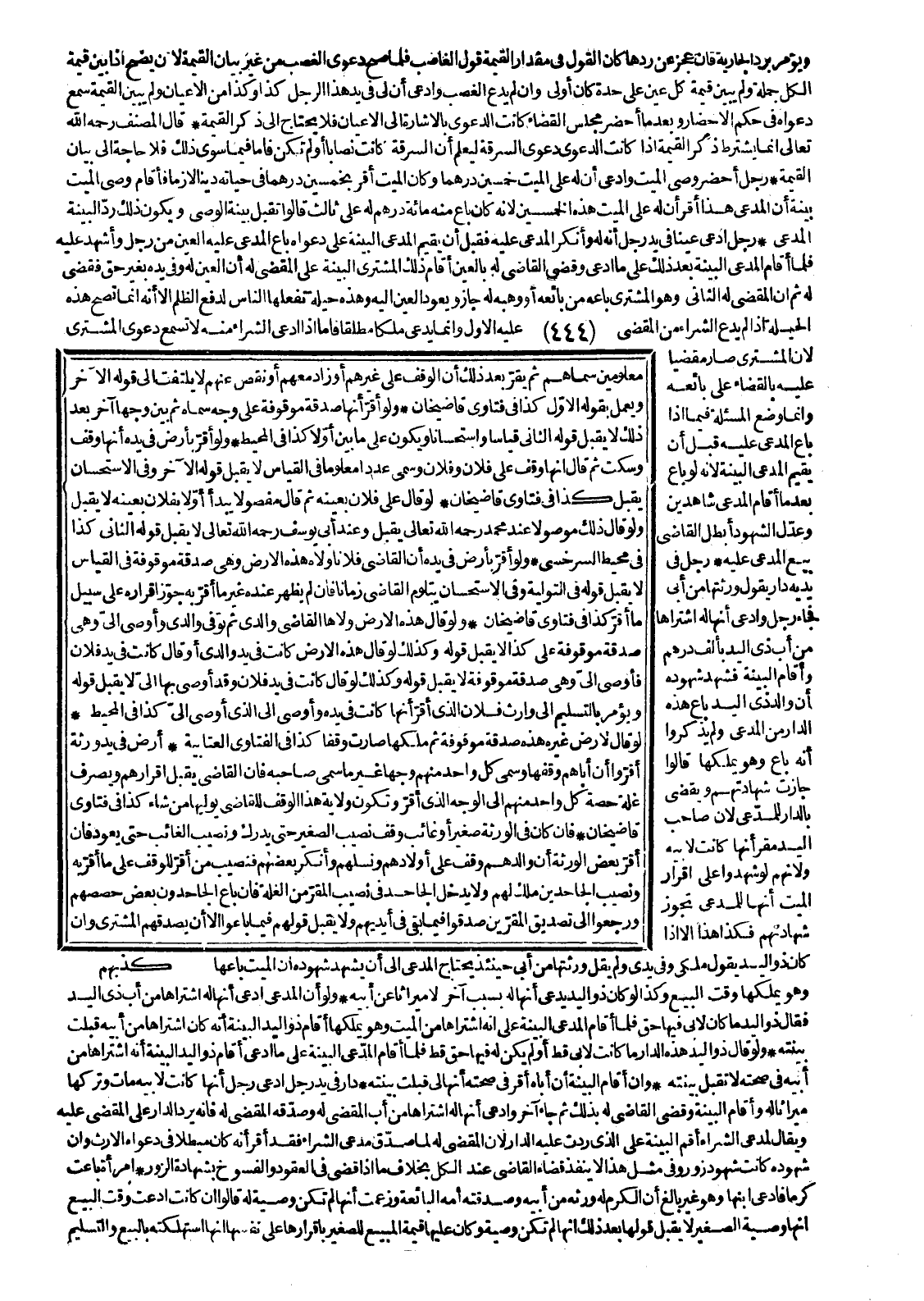 أَرْضٌ فِي يَدِ وَرَثَةٍ أَقَرُّوا أَنَّ أَبَاهُمْ وَقَفَهَا وَسَمَّى كُلُّ وَاحِدٍ مِنْهُمْ وَجْهًا غَيْرَ مَا سَمَّى صَاحِبُهُ فَإِنَّ الْقَاضِيَ يَقْبَلُ إقْرَارَهُمْ وَيَصْرِفَ غَلَّةَ حِصَّةِ كُلِّ وَاحِدٍ مِنْهُمْ إلَى الْوَجْهِ الَّذِي أَقَرَّ وَتَكُونُ وِلَايَةُ هَذَا الْوَقْفِ لِلْقَاضِي يُوَلِّيهَا مَنْ شَاءَ، كَذَا فِي فَتَاوَى قَاضِي خَانْ فَإِنْ كَانَ فِي الْوَرَثَةِ صَغِيرٌ أَوْ غَائِبٌ وَقَفَ نَصِيبُ الصَّغِيرِ حَتَّى يُدْرِكَ وَنَصِيبُ الْغَائِبِ حَتَّى يَعُودَ فَإِنْ أَقَرَّ بَعْضُ الْوَرَثَةِ أَنَّ وَالِدَهُمْ وَقَفَ عَلَى أَوْلَادِهِمْ وَنَسْلِهِمْ وَأَنْكَرَ بَعْضُهُمْ فَنَصِيبُ مَنْ أَقَرَّ لِلْوَقْفِ عَلَى مَا أَقَرَّ بِهِ وَنَصِيبُ الْجَاحِدِينَ مِلْكٌ لَهُمْ وَلَا يَدْخُلُ الْجَاحِدُ فِي نَصِيبِ الْمُقِرِّ مِنْ الْغَلَّةِ فَإِنْ بَاعَ الْجَاحِدُونَ بَعْضَ حِصَصِهِمْ وَرَجَعُوا إلَى تَصْدِيقِ الْمُقِرِّينَ صُدِّقُوا فِيمَا بَقِيَ فِي أَيْدِيهِمْ وَلَا يَقْبَلُ قَوْلُهُمْ فِيمَا بَاعُوا إلَّا أَنْ يُصَدِّقَهُمْ الْمُشْتَرِي، وَإِنْ
