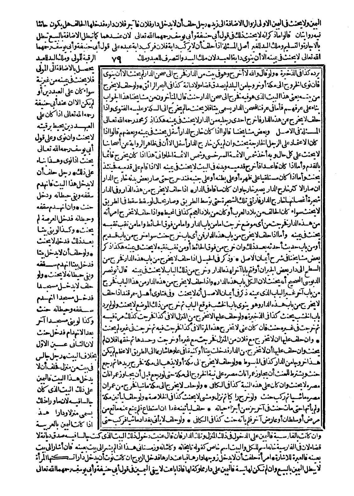 وَذَكَرَ فِي الْحِيَلِ إذَا حَلَفَ لَا يَخْرُجُ مِنْ بَابِ هَذِهِ الدَّارِ فَخَرَجَ مِنْ السَّطْحِ إلَى دَارِ بَعْضِ الْجِيرَانِ أَوْ فَتَحَ بَابًا آخَرَ لِهَذِهِ الدَّارِ وَخَرَجَ مِنْ ذَلِكَ الْبَابِ لَا يَحْنَثُ فِي يَمِينِهِ قَالَ أَبُو نَصْرٍ الدَّبُوسِيُّ: الصَّحِيحُ أَنَّهُ يَحْنَثُ؛ لِأَنَّ الْكُلَّ بَابُ هَذِهِ الدَّارِ.