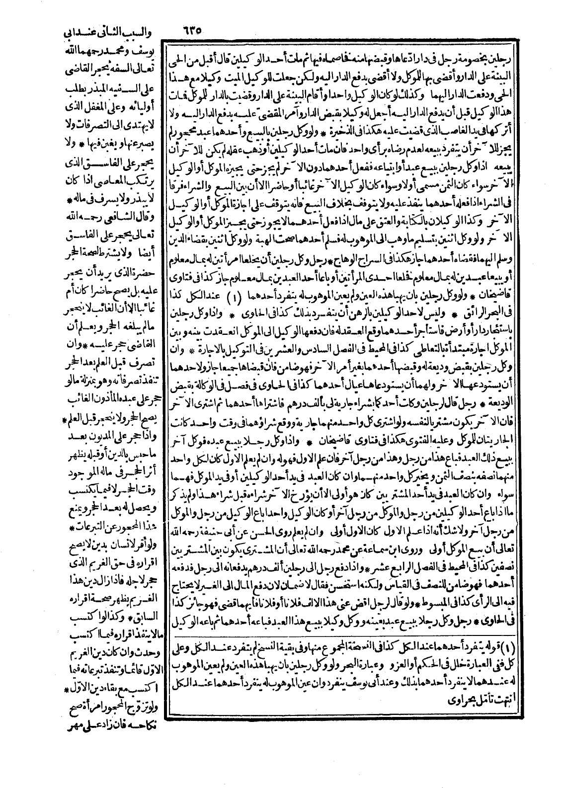 وَلَوْ وَكَّلَ رَجُلَيْنِ بِالْبَيْعِ وَأَحَدُهُمَا عَبْدٌ مَحْجُورٌ لَمْ يَجُزْ لِلْآخَرِ أَنْ يَتَفَرَّدَ بِبَيْعِهِ لِعَدَمِ رِضَاهُ بِرَأْيِ وَاحِدٍ فَإِنْ مَاتَ أَحَدُ الْوَكِيلِينَ أَوْ ذَهَبَ عَقْلُهُ لَمْ يَكُنْ لِلْآخَرِ أَنْ يَبِيعَهُ إذَا وَكَّلَ رَجُلَيْنِ بِبَيْعِ عَبْدٍ أَوْ ابْتِيَاعِهِ فَفَعَلَ أَحَدُهُمَا دُونَ الْآخَرِ لَمْ يَجُزْ حَتَّى يُجِيزَهُ الْمُوَكِّلُ أَوْ الْوَكِيلُ الْآخَرُ سَوَاءٌ كَانَ الثَّمَنُ مُسَمًّى أَوْ لَا وَسَوَاءٌ كَانَ الْوَكِيلُ الْآخَرُ غَائِبًا أَوْ حَاضِرًا إلَّا أَنَّ بَيْنَ الْبَيْعِ وَالشِّرَاءِ فَرْقًا فِي الشِّرَاءِ إذَا فَعَلَهُ أَحَدُهُمَا يَنْفُذُ عَلَيْهِ وَلَا يَتَوَقَّفُ بِخِلَافِ الْبَيْعِ فَإِنَّهُ يَتَوَقَّفُ عَلَى إجَازَةِ الْمُوَكِّلِ أَوْ الْوَكِيلِ الْآخَرِ وَكَذَا الْوَكِيلَانِ بِالْكِتَابَةِ وَالْعِتْقِ عَلَى مَالٍ إذَا فَعَلَ أَحَدُهُمَا لَا يَجُوزُ حَتَّى يُجِيزَ الْمُوَكِّلُ أَوْ الْوَكِيلُ الْآخَرُ وَلَوْ وَكَّلَ اثْنَيْنِ بِتَسْلِيمِ مَا وَهَبَ إلَى الْمَوْهُوبِ لَهُ فَسَلَّمَ أَحَدُهُمَا صَحَّتْ الْهِبَةُ وَلَوْ وَكَّلَ اثْنَيْنِ بِقَضَاءِ الدَّيْنِ وَسَلَّمَ إلَيْهِمَا فَقَضَاهُ أَحَدُهُمَا جَازَ هَكَذَا فِي السِّرَاجِ الْوَهَّاجِ.