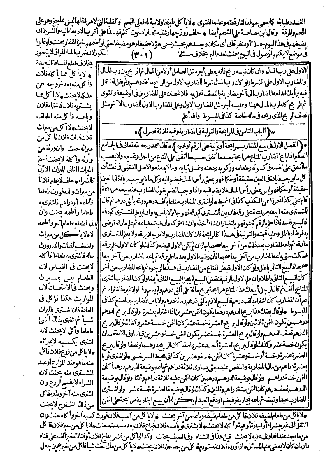 [الْبَابُ الثَّامِنُ فِي الْمُرَابَحَةِ وَالتَّوْلِيَةِ فِي الْمُضَارَبَةِ وَفِيهِ ثَلَاثَةُ فُصُولٍ]