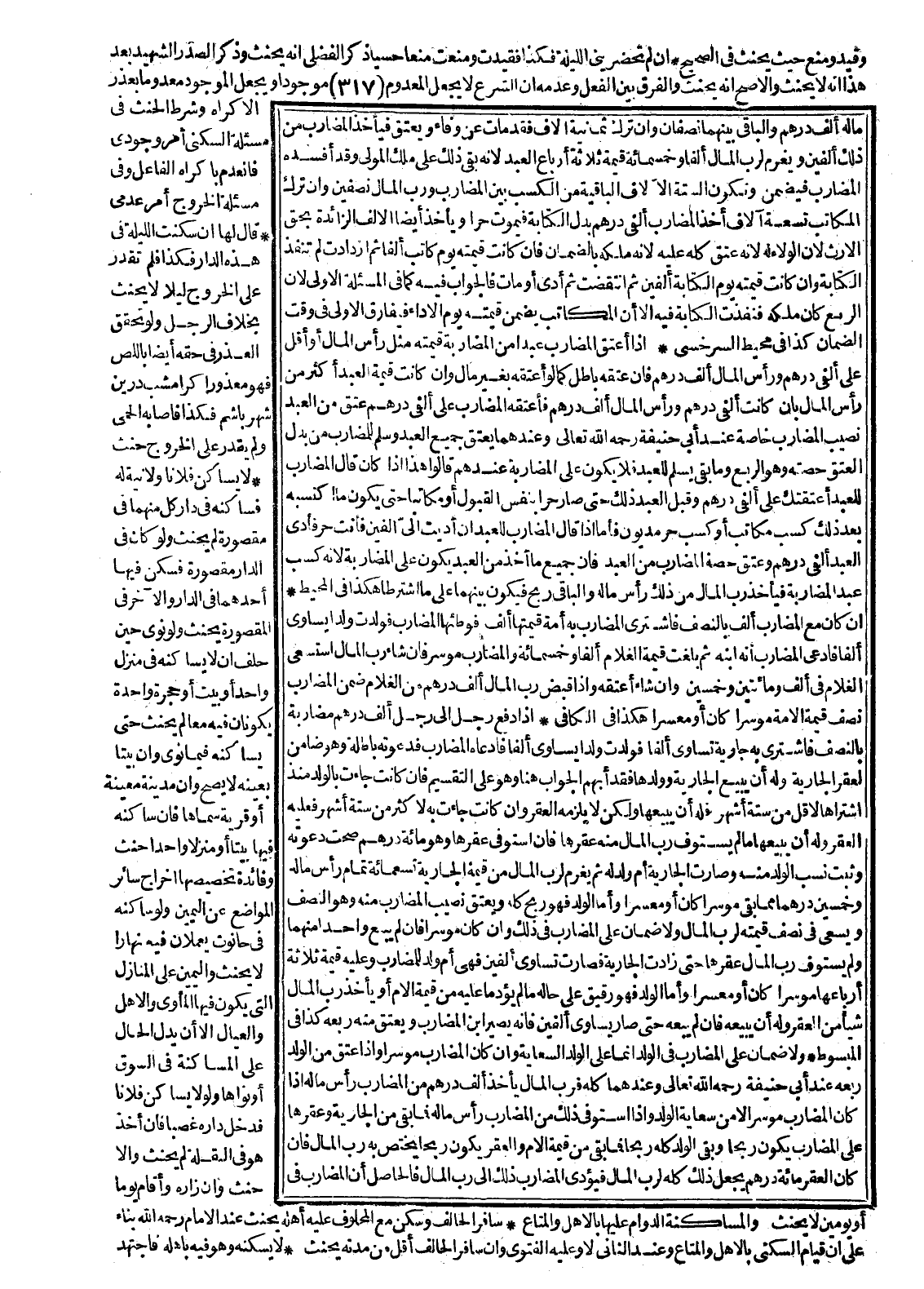 إذَا دَفَعَ رَجُلٌ إلَى رَجُلٍ أَلْفَ دِرْهَمٍ مُضَارَبَةً بِالنِّصْفِ فَاشْتَرَى بِهِ جَارِيَةً تُسَاوِي أَلْفًا فَوَلَدَتْ وَلَدًا يُسَاوِي أَلْفًا فَادَّعَاهُ الْمُضَارِبُ فَدَعْوَتُهُ بَاطِلَةٌ وَهُوَ ضَامِنٌ لِعُقْرِ الْجَارِيَةِ، وَلَهُ أَنْ يَبِيعَ الْجَارِيَةَ وَوَلَدَهَا فَقَدْ أُبْهِمَ الْجَوَابُ هُنَا وَهُوَ عَلَى التَّقْسِيمِ فَإِنْ كَانَتْ جَاءَتْ بِالْوَلَدِ مُنْذُ اشْتَرَاهَا لِأَقَلَّ مِنْ سِتَّةِ أَشْهُرٍ فَلَهُ أَنْ يَبِيعَهَا وَلَكِنْ لَا يَلْزَمُهُ الْعُقْرُ وَإِنْ كَانَتْ جَاءَتْ بِهِ لِأَكْثَرَ مِنْ سِتَّةِ أَشْهُرٍ فَعَلَيْهِ الْعُقْرُ وَلَهُ أَنْ يَبِيعَهَا مَا لَمْ يَسْتَوْفِ رَبُّ الْمَالِ مِنْهُ عُقْرَهَا فَإِنْ اسْتَوْفِي عُقْرَهَا وَهُوَ مِائَةُ دِرْهَمٍ صَحَّتْ دَعْوَتُهُ وَثَبَتَ نَسَبُ الْوَلَدِ مِنْهُ وَصَارَتْ الْجَارِيَةُ أُمَّ وَلَدٍ لَهُ ثُمَّ يَغْرَمُ لِرَبِّ الْمَالِ مِنْ قِيمَةِ الْجَارِيَةِ تِسْعَمِائَةٍ تَمَامَ رَأْسِ مَالِهِ وَخَمْسِينَ دِرْهَمًا مِمَّا بَقِيَ مُوسِرًا كَانَ أَوْ مُعْسِرًا وَأَمَّا الْوَلَدُ فَهُوَ رِبْحٌ كُلُّهُ وَيَعْتِقُ نَصِيبُ الْمُضَارِبِ مِنْهُ وَهُوَ النِّصْفُ وَيَسْعَى فِي نِصْفِ قِيمَتِهِ لِرَبِّ الْمَالِ وَلَا ضَمَانَ عَلَى الْمُضَارِبِ فِي ذَلِكَ وَإِنْ كَانَ مُوسِرًا فَإِنْ لَمْ يَبِعْ وَاحِدًا مِنْهُمَا وَلَمْ يَسْتَوْفِ رَبُّ الْمَالِ عُقْرَهَا حَتَّى زَادَتْ الْجَارِيَةُ فَصَارَتْ تُسَاوِي أَلْفَيْنِ فَهِيَ أُمُّ وَلَدٍ لِلْمُضَارِبِ وَعَلَيْهِ قِيمَةُ ثَلَاثَةِ أَرْبَاعِهَا مُوسِرًا كَانَ أَوْ مُعْسِرًا، وَأَمَّا الْوَلَدُ فَهُوَ رَقِيقٌ عَلَى حَالِهِ مَا لَمْ يُؤَدِّ مَا عَلَيْهِ مِنْ قِيمَةِ الْأُمِّ أَوْ يَأْخُذُ رَبُّ الْمَالِ شَيْئًا مِنْ الْعُقْرِ وَلَهُ أَنْ يَبِيعَهُ فَإِنْ لَمْ يَبِعْهُ حَتَّى صَارَ يُسَاوِي أَلْفَيْنِ فَإِنَّهُ يَصِيرُ ابْنَ الْمُضَارِبِ وَيَعْتِقُ مِنْهُ رُبُعَهُ كَذَا فِي الْمَبْسُوطِ.