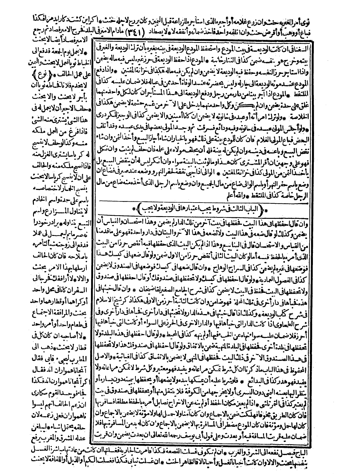 [الْبَابُ الثَّالِثُ فِي شُرُوطٍ يَجِبُ اعْتِبَارُهَا فِي الْوَدِيعَةِ]