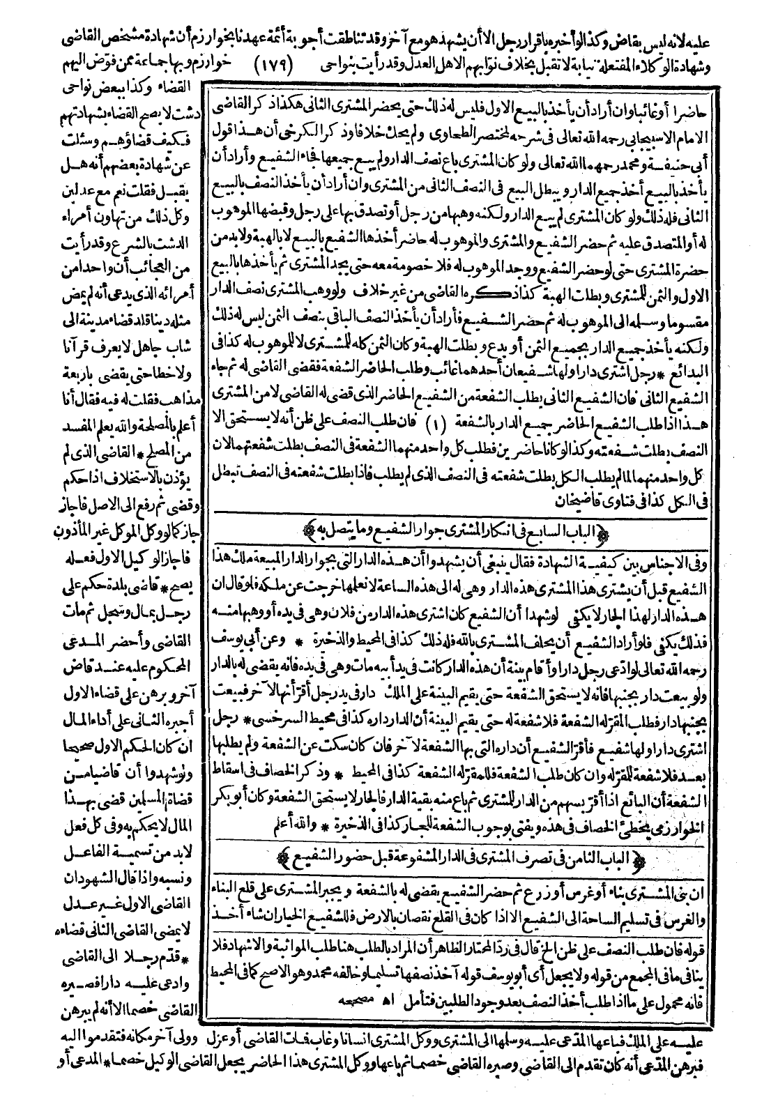 [الْبَاب الثَّامِن فِي تَصْرِف الْمُشْتَرِي فِي الدَّارِ الْمَشْفُوعَةِ قَبْلَ حُضُورِ الشَّفِيعِ]