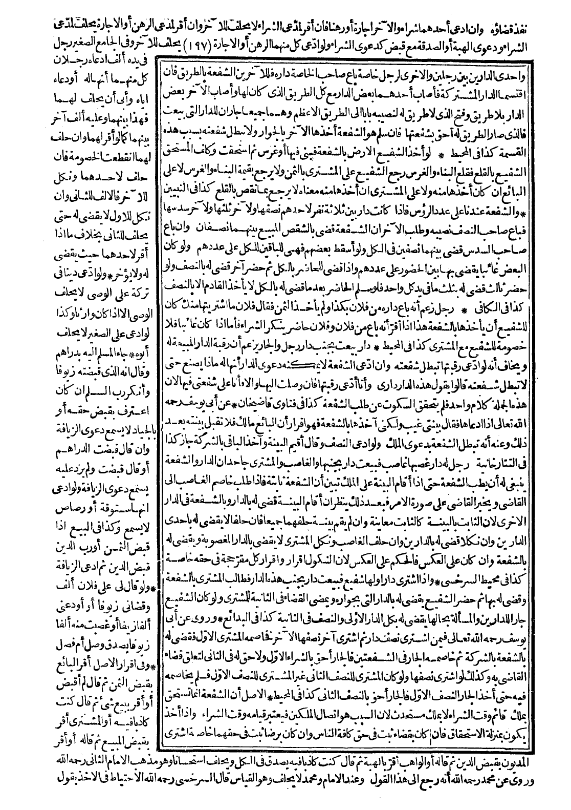 وَالشُّفْعَةُ عِنْدَنَا عَلَى عَدَدِ الرُّءُوسِ فَإِذَا كَانَتْ دَارٌ بَيْنَ ثَلَاثَةِ نَفَرٍ لِأَحَدِهِمْ نِصْفُهَا وَلِآخَرَ ثُلُثُهَا وَلِآخَرَ سُدُسُهَا فَبَاعَ صَاحِبُ النِّصْفِ نَصِيبَهُ وَطَلَبَ الْآخَرَانِ الشُّفْعَةَ قَضَى بِالشِّقْصِ الْمَبِيعِ بَيْنَهُمَا نِصْفَانِ وَإِنْ بَاعَ صَاحِبُ السُّدُسِ قَضَى بَيْنَهُمَا نِصْفَيْنِ فِي الْكُلِّ وَلَوْ أَسْقَطَ بَعْضُهُمْ فَهِيَ لِلْبَاقِينَ لِلْكُلِّ عَلَى عَدَدِهِمْ وَلَوْ كَانَ الْبَعْضُ غَائِبًا يَقْضِي بِهَا بَيْنَ الْحُضُورِ عَلَى عَدَدِهِمْ وَإِذَا قَضَى لِلْحَاضِرِ بِالْكُلِّ ثُمَّ حَضَرَ آخَرُ قَضَى لَهُ بِالنِّصْفِ وَلَوْ حَضَرَ ثَالِثٌ قَضَى لَهُ بِثُلُثِ مَا فِي يَدِ كُلِّ وَاحِدٍ فَلَوْ سَلَّمَ الْحَاضِرُ بَعْدَمَا قَضَى لَهُ بِالْكُلِّ لَا يَأْخُذُ الْقَادِمُ إلَّا بِالنِّصْفِ كَذَا فِي الْكَافِي.
