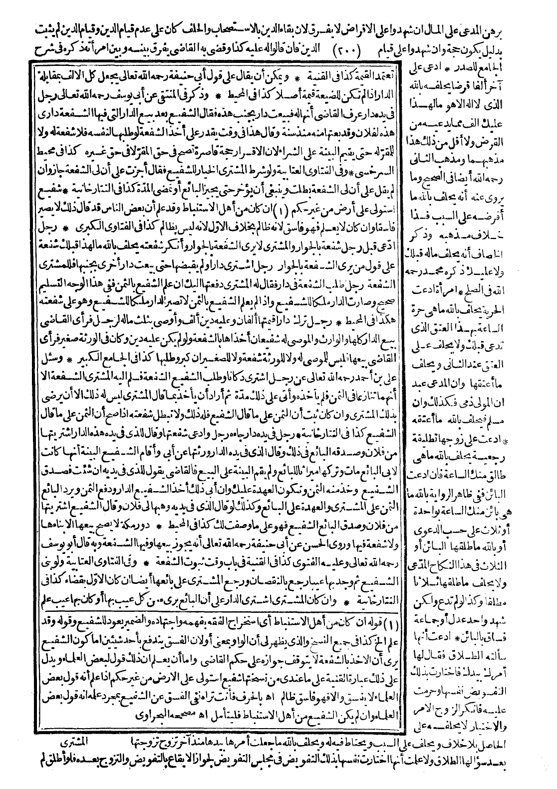 رَجُلٌ ادَّعَى قَبْلَ رَجُلٍ شُفْعَةً بِالْجِوَارِ وَالْمُشْتَرِي لَا يَرَى الشُّفْعَةَ بِالْجِوَارِ وَأَنْكَرَ شُفْعَتَهُ. يَحْلِفُ بِاَللَّهِ مَا لِهَذَا قِبَلَكَ شُفْعَةٌ عَلَى قَوْلِ مَنْ يَرَى بِالشُّفْعَةِ بِالْجِوَارِ. رَجُلٌ اشْتَرَى دَارًا وَلَمْ يَقْبِضْهَا حَتَّى بِيعَتْ دَارٌ أُخْرَى بِجَنْبِهَا فَلِلْمُشْتَرِي الشُّفْعَةُ. رَجُلٌ طَلَبَ الشُّفْعَةَ فِي دَارٍ فَقَالَ لَهُ الْمُشْتَرِي دَفَعْتهَا إلَيْك إنْ عَلِمَ الشَّفِيعُ بِالثَّمَنِ فَفِي هَذَا الْوَجْهِ التَّسْلِيمُ صَحِيحٌ وَصَارَتْ الدَّارُ مِلْكًا لِلشَّفِيعِ وَإِذَا لَمْ يَعْلَمْ الشَّفِيعُ بِالثَّمَنِ لَا تَصِيرُ الدَّارُ مِلْكًا لِلشَّفِيعِ وَهُوَ عَلَى شُفْعَتِهِ هَكَذَا فِي الْمُحِيطِ.