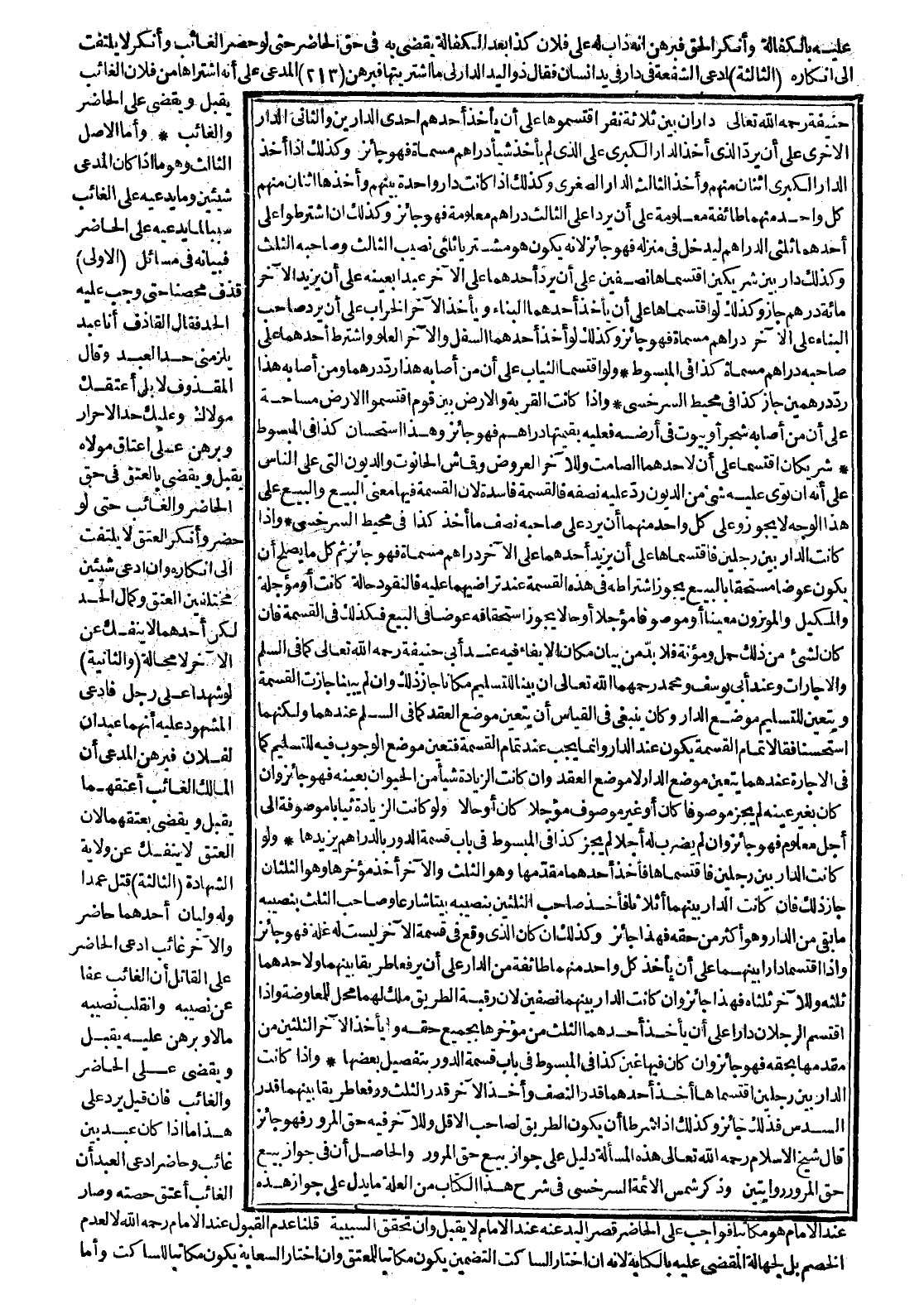وَإِذَا كَانَتْ الدَّارُ بَيْنَ رَجُلَيْنِ اقْتَسَمَاهَا أَخَذَ أَحَدُهُمَا قَدْرَ النِّصْفِ وَأَخَذَ الْآخَرُ قَدْرَ الثُّلُثِ وَرَفَعَا طَرِيقًا بَيْنَهُمَا قَدْرَ السُّدُسِ فَذَلِكَ جَائِزٌ، وَكَذَلِكَ إذَا شَرَطَا أَنْ يَكُونَ الطَّرِيقُ لِصَاحِبِ الْأَقَلِّ وَلِلْآخَرِ فِيهِ حَقُّ الْمُرُورِ فَهُوَ جَائِزٌ قَالَ شَيْخُ الْإِسْلَامِ - رَحِمَهُ اللَّهُ تَعَالَى -: هَذِهِ الْمَسْأَلَةُ دَلِيلٌ عَلَى جَوَازِ بَيْعِ حَقِّ الْمُرُورِ وَالْحَاصِلُ أَنَّ فِي جَوَازِ بَيْعِ حَقِّ الْمُرُورِ رِوَايَتَيْنِ وَذَكَرَ شَمْسُ الْأَئِمَّةِ السَّرَخْسِيُّ فِي شَرْحِ هَذَا الْكِتَابِ مِنْ الْعِلَّةِ مَا يَدُلُّ عَلَى جَوَازِ هَذِهِ
