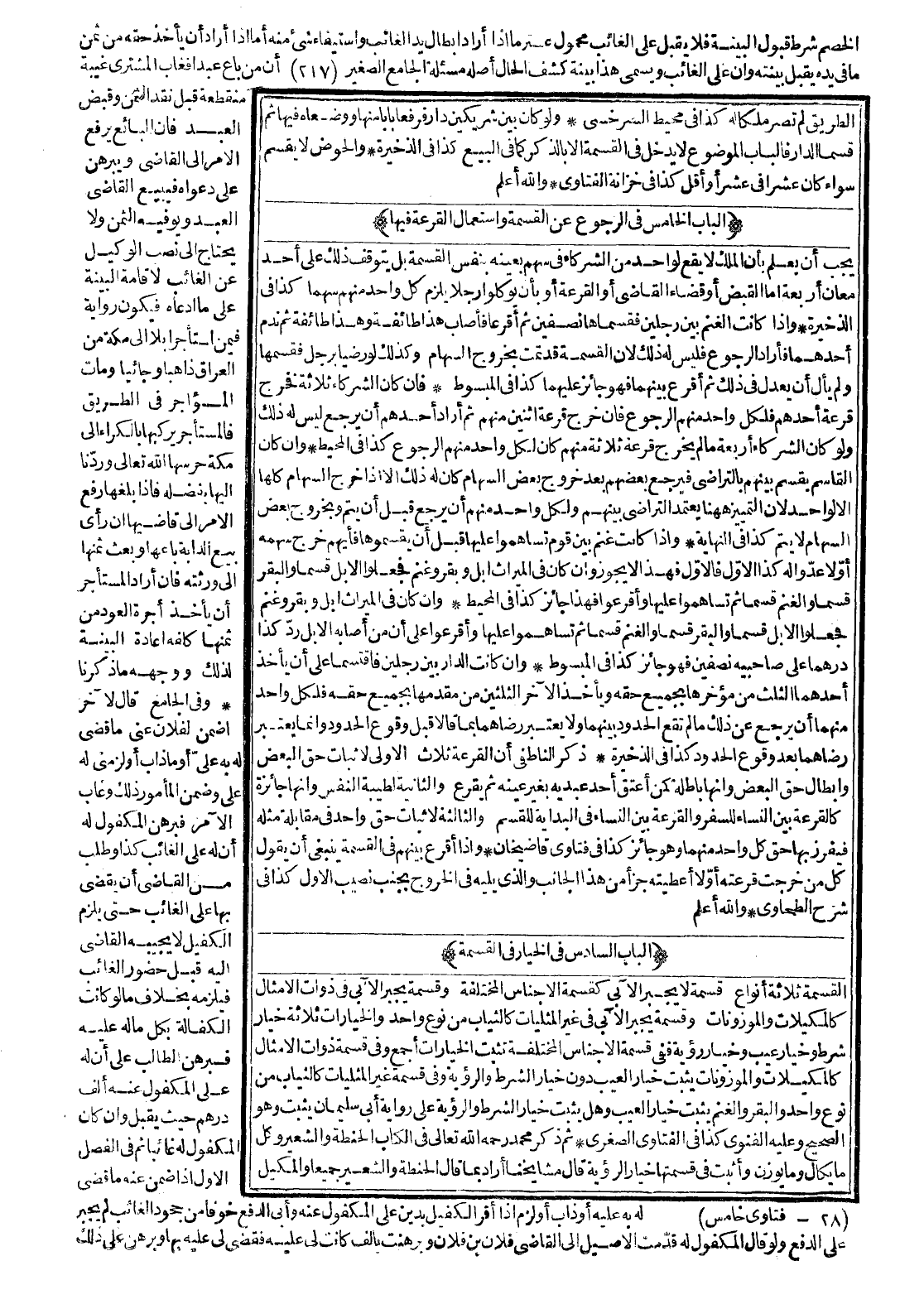 [الْبَابُ الْخَامِسُ فِي الرُّجُوعِ عَنْ الْقِسْمَةِ وَاسْتِعْمَالِ الْقُرْعَةِ فِيهَا]