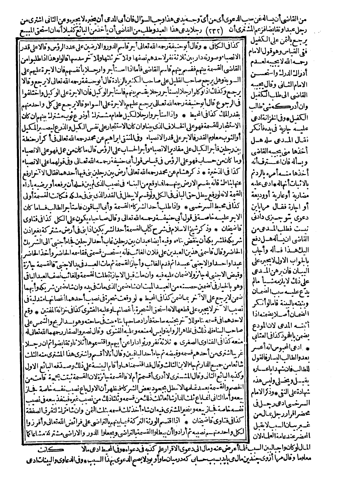 وَقَالَ أَبُو حَنِيفَةَ - رَحِمَهُ اللَّهُ تَعَالَى - أَجْرُ قَاسِمِ الدُّورِ وَالْأَرْضِينَ عَلَى عَدَدِ الرُّءُوسِ وَقَالَا عَلَى قَدْرِ الْأَنْصِبَاءِ وَصُورَتُهُ دَارٌ بَيْنَ ثَلَاثَةِ نَفَرٍ لِأَحَدِهِمْ نِصْفُهَا وَلِلْآخَرِ ثُلُثُهَا وَلِلْآخَرِ سُدُسُهَا قَالُوا: وَهَذَا إذَا طَلَبُوا مِنْ الْقَاضِي الْقِسْمَةَ بَيْنَهُمْ فَقَسَّمَ بَيْنَهُمْ قَاسِمُ الْقَاضِي فَأَمَّا إذَا اسْتَأْجَرُوا رَجُلًا بِأَنْفُسِهِمْ فَإِنَّ الْأُجْرَةَ عَلَيْهِمْ عَلَى السَّوِيَّةِ وَهَلْ يَرْجِعُ صَاحِبُ الْقَلِيلِ عَلَى صَاحِبِ الْكَثِيرِ بِالزِّيَادَةِ؟ قَالَ أَبُو حَنِيفَةَ - رَحِمَهُ اللَّهُ تَعَالَى -: لَا يَرْجِعُ وَقَالَا: يَرْجِعُ وَكَذَلِكَ إذَا وَكَّلُوا رَجُلًا لِيَسْتَأْجِرَ رَجُلًا يَقْسِمُ بَيْنَهُمْ فَاسْتَأْجَرَ الْوَكِيلُ فَإِنَّ الْأُجْرَةَ عَلَى الْوَكِيلِ وَاخْتَلَفُوا فِي الرُّجُوعِ قَالَ أَبُو حَنِيفَةَ - رَحِمَهُ اللَّهُ تَعَالَى -: يَرْجِعُ عَلَيْهِمْ بِالْأُجْرَةِ عَلَى السَّوَاءِ وَقَالَا: يَرْجِعُ عَلَى كُلِّ وَاحِدٍ مِنْهُمْ بِقَدْرِ الْمِلْكِ كَذَا فِي الْمُحِيطِ.