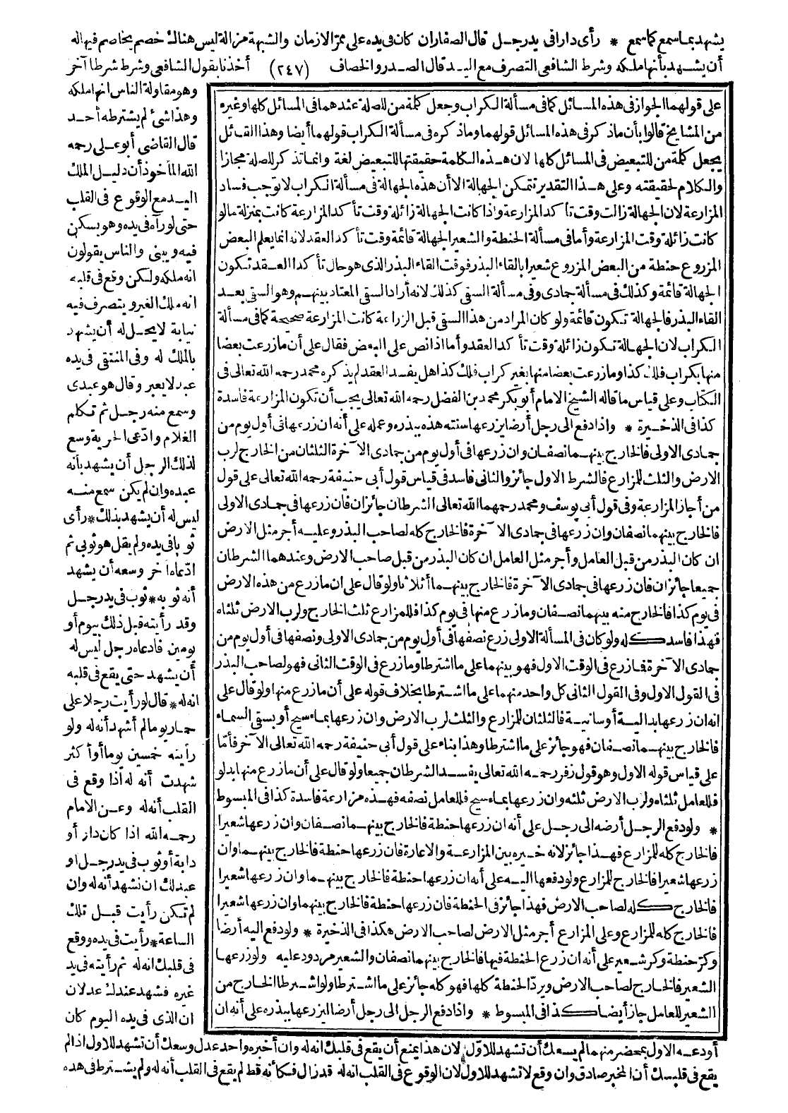 عَلَى قَوْلِهِمَا الْجَوَازَ فِي هَذِهِ الْمَسَائِلِ كَمَا فِي مَسْأَلَةِ الْكِرَابِ وَجَعْلُ كَلِمَةِ مِنْ لِلصِّلَةِ عِنْدَهُمَا فِي الْمَسَائِلِ كُلِّهَا وَغَيْرُهُ مِنْ الْمَشَايِخِ قَالُوا: بِأَنَّ مَا ذُكِرَ فِي هَذِهِ الْمَسَائِلِ قَوْلُهُمَا وَمَا ذَكَرَهُ فِي مَسْأَلَةِ الْكِرَابِ قَوْلُهُمَا أَيْضًا وَهَذَا الْقَائِلُ يَجْعَلُ كَلِمَةَ مِنْ لِلتَّبْعِيضِ فِي الْمَسَائِلِ كُلِّهَا لِأَنَّ هَذِهِ الْكَلِمَةَ حَقِيقَتُهَا لِلتَّبْعِيضِ لُغَةً وَإِنَّمَا تُذْكَرُ لِلصِّلَةِ مَجَازًا وَالْكَلَامُ لِحَقِيقَتِهِ وَعَلَى هَذَا التَّقْدِيرِ تَتَمَكَّنُ الْجَهَالَةُ إلَّا أَنَّ هَذِهِ الْجَهَالَةَ فِي مَسْأَلَةِ الْكِرَابِ لَا تُوجِبُ فَسَادَ الْمُزَارَعَةِ لِأَنَّ الْجَهَالَةَ زَالَتْ وَقْتَ تَأَكُّدِ الْمُزَارَعَةِ وَإِذَا كَانَتْ الْجَهَالَةُ زَائِلَةً وَقْتَ تَأَكُّدِ الْمُزَارَعَةِ كَانَتْ بِمَنْزِلَةِ مَا لَوْ كَانَتْ زَائِلَةً وَقْتَ الْمُزَارَعَةِ وَأَمَّا فِي مَسْأَلَةِ الْحِنْطَةِ وَالشَّعِيرِ الْجَهَالَةُ قَائِمَةٌ وَقْتَ تَأَكُّدِ الْعَقْدِ لِأَنَّهُ إنَّمَا يُعْلَمُ الْبَعْضُ الْمَزْرُوعُ حِنْطَةً مِنْ الْبَعْضِ الْمَزْرُوعِ شَعِيرًا بِإِلْقَاءِ الْبَذْرِ فَوَقْتَ إلْقَاءِ الْبَذْرِ الَّذِي هُوَ حَالُ تَأَكُّدِ الْعَقْدِ تَكُونُ الْجَهَالَةُ قَائِمَةً وَكَذَلِكَ فِي مَسْأَلَةِ جُمَادَى وَفِي مَسْأَلَةِ السَّقْيِ كَذَلِكَ لِأَنَّهُ أَرَادَ السَّقْيَ الْمُعْتَادَ بَيْنَهُمْ وَهُوَ السَّقْيُ بَعْدَ إلْقَاءِ الْبَذْرِ فَالْجَهَالَةُ تَكُونُ قَائِمَةً وَلَوْ كَانَ الْمُرَادُ مِنْ هَذَا السَّقْيَ قَبْلَ الزِّرَاعَةِ كَانَتْ الْمُزَارَعَةُ صَحِيحَةً كَمَا فِي مَسْأَلَةِ الْكِرَابِ لِأَنَّ الْجَهَالَةَ تَكُونُ زَائِلَةً وَقْتَ تَأَكُّدِ الْعَقْدِ وَأَمَّا إذَا نَصَّ عَلَى الْبَعْضِ فَقَالَ: عَلَى أَنَّ مَا زَرَعْت بَعْضًا مِنْهَا بِكِرَابٍ فَلَكَ كَذَا وَمَا زَرَعْت بَعْضًا مِنْهَا بِغَيْرِ كِرَابٍ فَلَكَ كَذَا هَلْ يَفْسُدُ الْعَقْدُ لَمْ يَذْكُرْهُ مُحَمَّدٌ - رَحِمَهُ اللَّهُ تَعَالَى - فِي الْكِتَابِ وَعَلَى قِيَاسِ مَا قَالَهُ الشَّيْخُ الْإِمَامُ أَبُو بَكْرٍ مُحَمَّدُ بْنُ الْفَضْلِ - رَحِمَهُ اللَّهُ تَعَالَى - يَجِبُ أَنْ تَكُونَ الْمُزَارَعَةُ فَاسِدَةً كَذَا فِي الذَّخِيرَةِ.