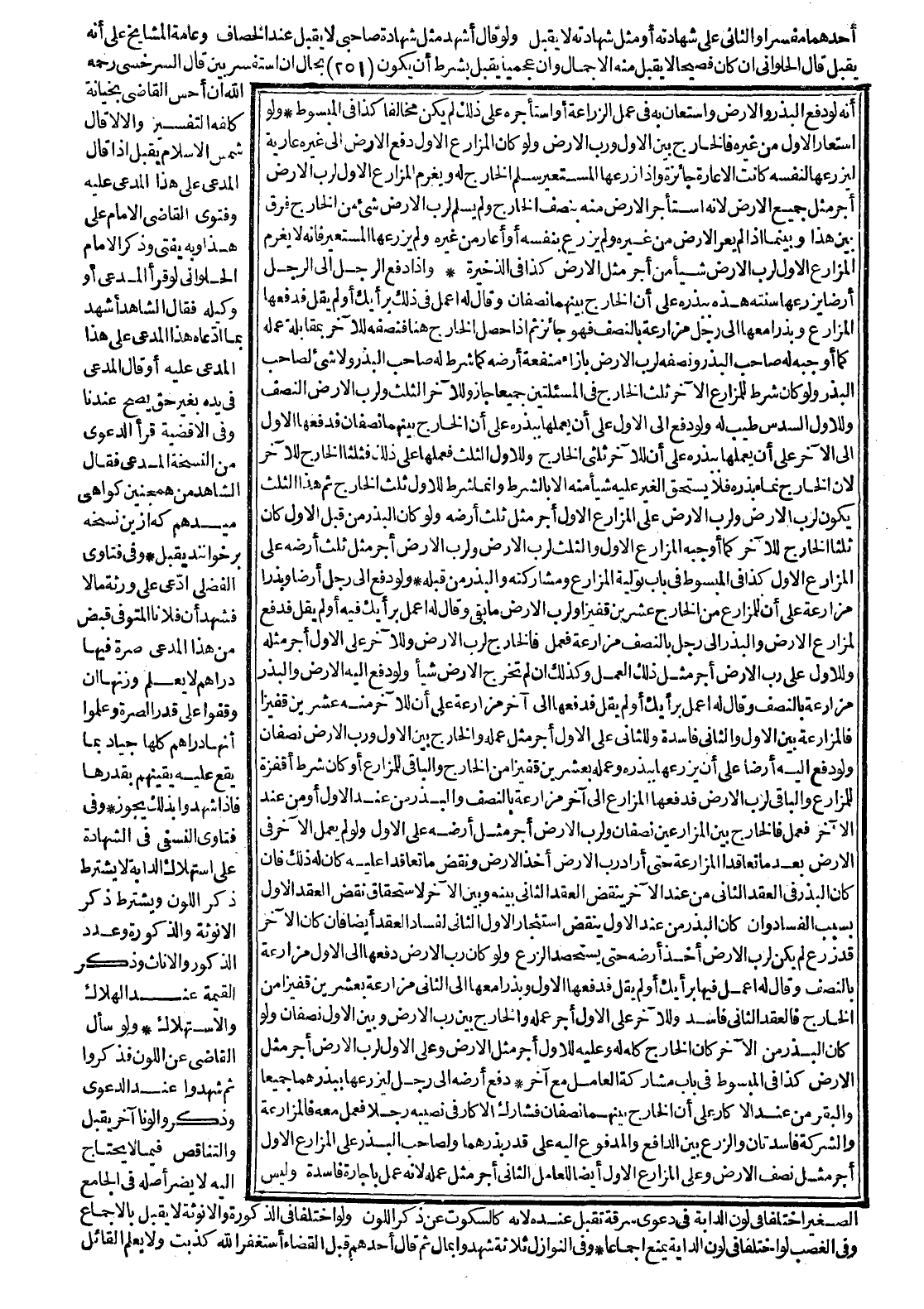 دَفَعَ أَرْضَهُ إلَى رَجُلٍ لِيَزْرَعَهَا بِبَذْرِهِمَا جَمِيعًا وَالْبَقَرُ مِنْ عِنْدِ الْأَكَّارِ عَلَى أَنَّ الْخَارِجَ بَيْنَهُمَا نِصْفَانِ فَشَارَكَ الْأَكَّارُ فِي نَصِيبِهِ رَجُلًا فَعَمِلَ مَعَهُ فَالْمُزَارَعَةُ وَالشَّرِكَةُ فَاسِدَتَانِ وَالزَّرْعُ بَيْنَ الدَّافِعِ وَالْمَدْفُوعِ إلَيْهِ عَلَى قَدْرِ بَذْرِهِمَا وَلِصَاحِبِ الْبَذْرِ عَلَى الْمُزَارِعِ الْأَوَّلِ أَجْرُ مِثْلِ نِصْفِ الْأَرْضِ وَعَلَى الْمُزَارِعِ الْأَوَّلِ أَيْضًا لِلْعَامِلِ الثَّانِي أَجْرُ مِثْلِ عَمَلِهِ لِأَنَّهُ عَمِلَ بِإِجَارَةٍ فَاسِدَةٍ وَلَيْسَ.