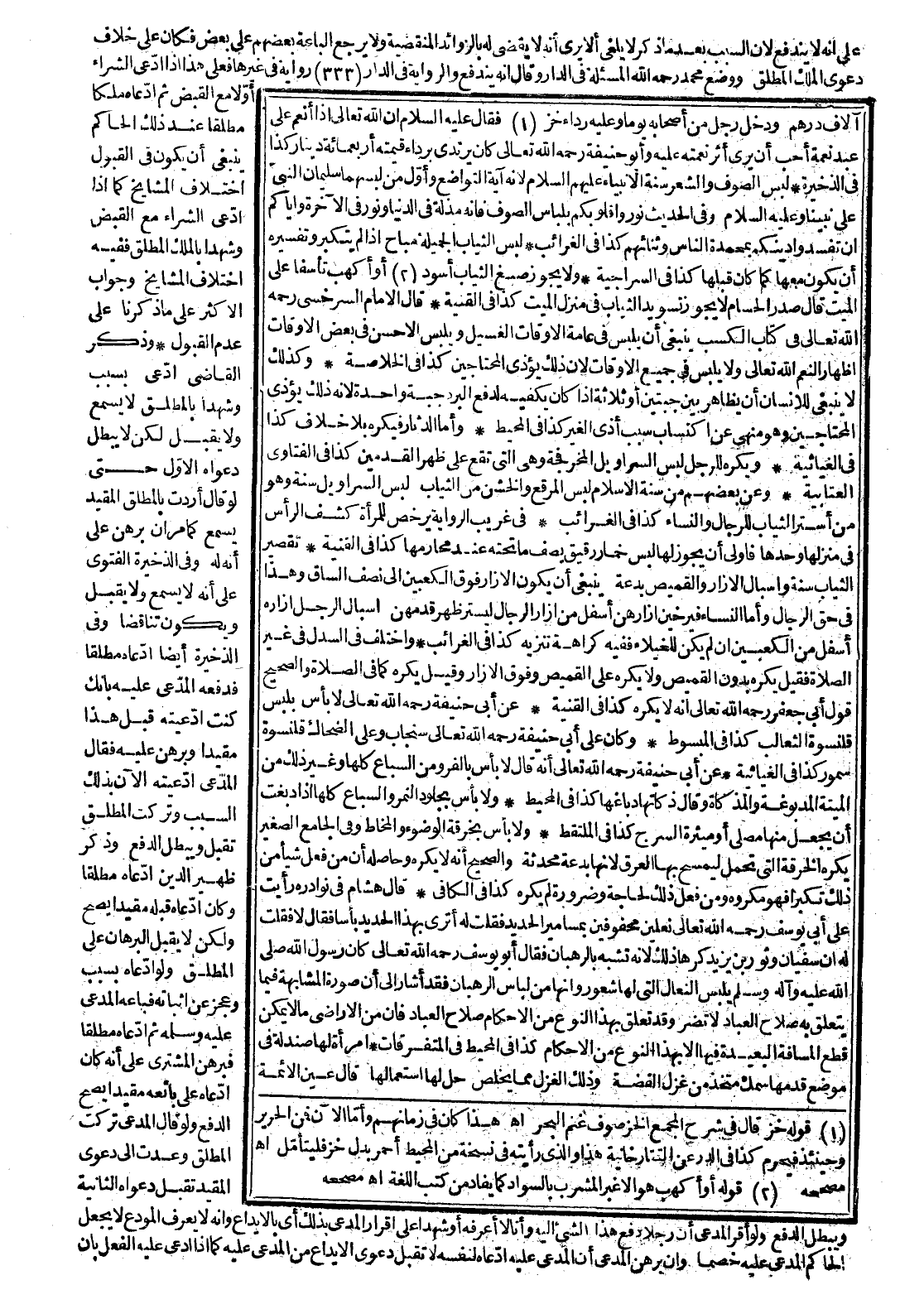 آلَافِ دِرْهَمٍ» «، وَدَخَلَ رَجُلٌ مِنْ أَصْحَابِهِ يَوْمًا وَعَلَيْهِ رِدَاءُ خَزٍّ فَقَالَ - عَلَيْهِ السَّلَامُ - إنَّ اللَّهَ تَعَالَى - إذَا أَنْعَمَ عَلَى عَبْدٍ نِعْمَةً أَحَبَّ أَنْ يَرَى أَثَرَ نِعْمَتِهِ عَلَيْهِ» وَأَبُو حَنِيفَةَ - رَحِمَهُ اللَّهُ تَعَالَى - كَانَ يَرْتَدِي بِرِدَاءٍ قِيمَتُهُ أَرْبَعُمِائَةِ دِينَارٍ، كَذَا فِي الذَّخِيرَةِ.