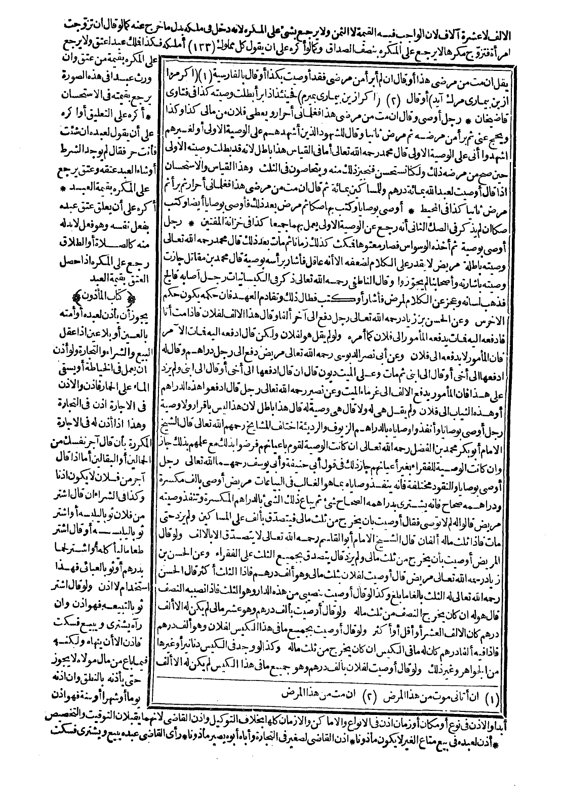 مَرِيضٌ قَالُوا لَهُ: لِمَ لَا تُوصِي، فَقَالَ: أَوْصَيْت بِأَنْ يُخْرَجَ مِنْ ثُلُثِ مَالِي فَيُتَصَدَّقُ بِأَلْفٍ عَلَى الْمَسَاكِينِ وَلَمْ يَزِدْ حَتَّى مَاتَ فَإِذَا ثُلُثُ مَالِهِ أَلْفَانِ، قَالَ الشَّيْخُ الْإِمَامُ أَبُو الْقَاسِمِ - رَحِمَهُ اللَّهُ تَعَالَى -: لَا يُتَصَدَّقُ إلَّا بِالْأَلْفِ، وَلَوْ قَالَ الْمَرِيضُ: أَوْصَيْت بِأَنْ يُخْرَجَ مِنْ ثُلُثِ مَالِي، وَلَمْ يَزِدْ قَالَ: يُتَصَدَّقُ بِجَمِيعِ الثُّلُثِ عَلَى الْفُقَرَاءِ، وَعَنْ الْحَسَنِ بْنِ زِيَادٍ - رَحِمَهُ اللَّهُ تَعَالَى -.