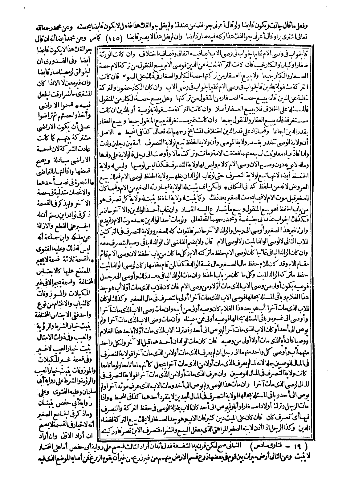 وَإِنْ كَانَ الْكِبَارُ حُضُورًا وَالتَّرِكَةُ خَالِيَةً عَنْ الدَّيْنِ فَإِنَّهُ يَبِيعُ حِصَّةَ الصِّغَارِ مِنْ الْمَنْقُولِ مِنْ تَرِكَتِهَا، وَهَلْ يَبِيعُ حِصَّةَ الْكِبَارِ مِنْ الْمَنْقُولِ فَالْمَسْأَلَةُ عَلَى الْخِلَافِ فَلَا يَبِيعُ الْعَقَارَ أَصْلًا، وَإِنْ كَانَتْ التَّرِكَةُ مَشْغُولَةً بِالْوَصِيَّةِ أَوْ بِالدَّيْنِ إنْ كَانَتْ مُسْتَغْرِقَةً فَإِنَّهُ يَبِيعُ الْعَقَارَ وَالْمَنْقُولَ جَمِيعًا، وَإِنْ كَانَتْ غَيْرَ مُسْتَغْرِقَةً يَبِيعُ الْمَنْقُولَ جَمِيعًا وَيَبِيعُ الْعَقَارَ بِقَدْرِ الدَّيْنِ إجْمَاعًا وَفِيمَا زَادَ عَلَى قَدْرِ الدَّيْنِ اخْتِلَافُ الْمَشَايِخِ - رَحِمَهُمْ اللَّهُ تَعَالَى، كَذَا فِي الْمُحِيطِ الْأَصْلُ أَنَّ وِلَايَةَ الْوَصِيِّ تَتَقَدَّرُ بِقَدْرِ وِلَايَةِ الْمُوصِي وَأَنَّ وِلَايَةَ الْحِفْظِ تَبَعٌ لِوِلَايَةِ التَّصَرُّفِ.