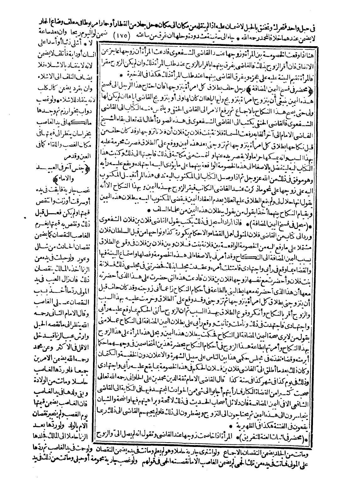 ثُمَّ إنَّ الزَّوْجَ سَأَلَنِي الْحُكْمَ بِمَا وَقَعَ عَلَيْهِ رَأْيِي وَاجْتِهَادِي فَاجْتَهَدْتُ فِي ذَلِكَ وَتَأَمَّلْت وَتَأَنَّيْت وَوَقَعَ رَأْيِي عَلَى بُطْلَانِ الْيَمِينِ الْمُضَافَةِ إلَى النِّكَاحِ عَمَلًا مِنِّي بِقَوْلِ مَنْ لَا يَرَى صِحَّةَ الْيَمِينِ الْمُضَافَةِ إلَى النِّكَاحِ؛ فَحَكَمْت بِبُطْلَانِ هَذِهِ الْيَمِينِ وَبِحِلِّ هَذِهِ الْمَرْأَةِ عَلَى هَذَا الزَّوْجِ بِهَذَا النِّكَاحِ وَأَمَرْتُهَا بِطَاعَةِ هَذَا الزَّوْجِ فِي أَحْكَامِ النِّكَاحِ بِحَضْرَةِ هَذَيْنِ الْمُتَخَاصِمَيْنِ فِي وَجْهِهِمَا حُكْمًا أَبْرَمْته وَقَضَاءً نَفَّذْته فِي مَجْلِسِ حُكْمِي هَذَا بَيْنَ النَّاسِ عَلَى سَبِيلِ الشُّهْرَةِ وَالْإِعْلَانِ دُونَ الْخِفْيَةِ وَالْكِتْمَانِ، وَكَانَ ذَلِكَ بَعْدَمَا أَطْلَقَ إلَيَّ الْقَاضِي فُلَانُ بْنُ فُلَانٍ الْحُكْمَ فِي هَذِهِ الْخُصُومَةِ بِمَا يَقَعُ عَلَيْهِ رَأْيِي وَاجْتِهَادِي وَذَلِكَ فِي يَوْمِ كَذَا فِي شَهْرِ كَذَا فِي سَنَةِ كَذَا، قَالَ الْقَاضِي الْإِمَامُ ثِقَةُ الدِّينِ مُحَمَّدُ بْنُ عَلِيٍّ الْحَلْوَانِيُّ - رَحِمَهُ اللَّهُ تَعَالَى -: صَحِبْت كَثِيرًا مِنْ الْقُضَاةِ الْكِبَارِ فَمَا رَأَيْتهمْ أَجَابُوا إلَى شَيْءٍ مِنْ الْحَوَادِثِ الْمُجْتَهَدِ فِيهَا الْكِتَابَةَ إلَى الْقَاضِي الشَّافِعِيِّ إلَّا فِي الْيَمِينِ الْمُضَافَةِ فَإِنَّ دَلَائِلَ أَصْحَابِ الْحَدِيثِ فِي ذَلِكَ لَائِحَةٌ وَبَرَاهِينُهُمْ فِيهَا وَاضِحَةٌ وَالشُّبَّانُ يَتَجَاسَرُونَ إلَى هَذِهِ الْيَمِينِ، ثُمَّ يَحْتَاجُونَ إلَى التَّزَوُّجِ وَيَضْطَرُّونَ إلَى ذَلِكَ فَلَوْ لَمْ يُجِبْهُمْ الْقَاضِي إلَى ذَلِكَ رُبَّمَا يَقَعُونَ فِي الْفِتْنَةِ، هَكَذَا فِي الظَّهِيرِيَّةِ.