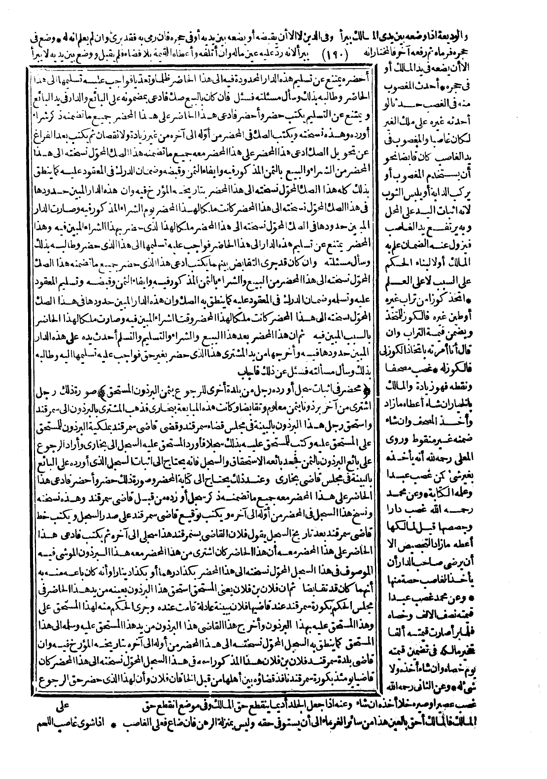 (مَحْضَرٌ فِي إثْبَاتِ سِجِلٍّ أَوْرَدَهُ رَجُلٌ مِنْ بَلْدَةٍ أُخْرَى لِلرُّجُوعِ بِثَمَنِ الْبِرْذَوْنِ الْمُسْتَحَقِّ) صُورَةُ ذَلِكَ: رَجُلٌ اشْتَرَى مِنْ آخَرَ بِرْذَوْنًا بِثَمَنٍ مَعْلُومٍ وَتَقَابَضَا وَكَانَتْ هَذِهِ الْمُبَايَعَةُ بِبُخَارَى، فَذَهَبَ الْمُشْتَرِي بِالْبِرْذَوْنِ إلَى سَمَرْقَنْدَ وَاسْتَحَقَّ رَجُلٌ هَذَا الْبِرْذَوْنَ بِالْبَيِّنَةِ فِي مَجْلِسِ قَضَاءِ سَمَرْقَنْدَ وَقَضَى قَاضِي سَمَرْقَنْدَ بِمِلْكِيَّةِ الْبِرْذَوْنِ لِلْمُسْتَحِقِّ عَلَى الْمُسْتَحَقِّ عَلَيْهِ وَكَتَبَ لِلْمُسْتَحَقِّ عَلَيْهِ بِذَلِكَ سِجِلًّا، فَأَوْرَدَ الْمُسْتَحَقُّ عَلَيْهِ السِّجِلَّ إلَى بُخَارَى وَأَرَادَ الرُّجُوعَ عَلَى بَائِعِ الْبِرْذَوْنِ بِالثَّمَنِ فَجَحَدَ بَائِعُهُ الِاسْتِحْقَاقَ وَالسِّجِلَّ فَإِنَّهُ يَحْتَاجُ إلَى إثْبَاتِ السِّجِلِّ الَّذِي أَوْرَدَهُ عَلَى الْبَائِعِ بِالْبَيِّنَةِ فِي مَجْلِسِ قَاضِي بُخَارَى وَعِنْدَ ذَلِكَ يَحْتَاجُ إلَى كِتَابَةِ الْمَحْضَرِ وَصُورَةُ ذَلِكَ حَضَرَ وَأَحْضَرَ فَادَّعَى هَذَا الْحَاضِرُ عَلَى هَذَا الْمُحْضَرِ مَعَهُ جَمِيعَ مَا تَضَمَّنَهُ ذِكْرُ سِجِلٍّ أَوْ رَدُّهُ مِنْ قِبَلِ قَاضِي سَمَرْقَنْدَ وَهَذِهِ نُسْخَتُهُ وَنَسَخَ هَذَا السِّجِلَّ فِي الْمَحْضَرِ مِنْ أَوَّلِهِ إلَى آخِرِهِ، وَيَكْتُبُ تَوْقِيعَ قَاضِي سَمَرْقَنْدَ عَلَى صَدْرِ السِّجِلِّ، وَيَكْتُبُ خَطَّ قَاضِي سَمَرْقَنْدَ بَعْدَ تَارِيخِ السِّجِلِّ، يَقُولُ فُلَانٌ الْقَاضِي بِسَمَرْقَنْدَ: هَذَا سِجِلٌّ إلَى آخِرِهِ ثُمَّ يَكْتُبُ فَادَّعَى هَذَا الْحَاضِرُ عَلَى هَذَا الْمُحْضَرِ مَعَهُ أَنَّ هَذَا الْحَاضِرَ كَانَ اشْتَرَى مِنْ هَذَا الْمُحْضَرِ مَعَهُ هَذَا الْبِرْذَوْنَ الْمُوَشَّى فِيهِ الْمَوْصُوفُ فِي هَذَا السِّجِلِّ الْمُحَوَّلِ نُسْخَتُهُ إلَى هَذَا الْمُحْضَرِ بِكَذَا دِرْهَمًا أَوْ بِكَذَا دِينَارًا وَأَنَّهُ كَانَ بَاعَهُ مِنْهُ بِهِ أَنَّهُمَا كَانَ قَدْ تَقَابَضَا.