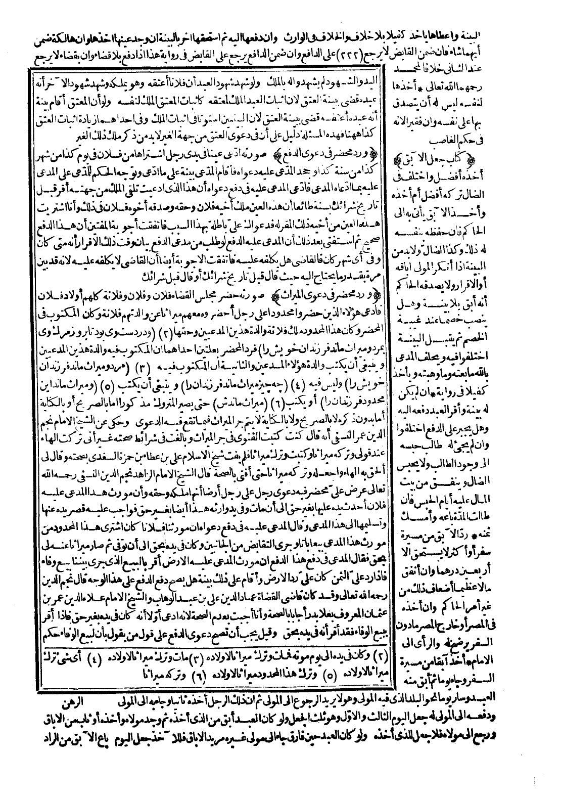 (وَرُدَّ مَحْضَرٌ فِي دَعْوَى الْمِيرَاثِ) صُورَتُهُ حَضَرَ مَجْلِسَ الْقَضَاءِ فُلَانٌ وَفُلَانٌ وَفُلَانَةُ كُلُّهُمْ أَوْلَادُ فُلَانٍ فَادَّعَى هَؤُلَاءِ الَّذِينَ حَضَرُوا مَحْدُودًا عَلَى رَجُلٍ أَحْضَرُوهُ مَعَهُمْ مِيرَاثًا عَنْ وَالِدَتِهِمْ فُلَانَةَ وَكَانَ الْمَكْتُوبُ فِي الْمَحْضَرِ وَكَانَ هَذَا الْمَحْدُودُ مِلْكَ فُلَانَةَ وَالِدَةِ هَذَيْنِ الْمُدَّعِيَيْنِ وَحَقَّهَا (ودردست وى بود تا بروز مرك وى بمرد وميراث ماند فرزندان خويش را) فَرُدَّ الْمَحْضَرُ بِعِلَّتَيْنِ: إحْدَاهُمَا أَنَّ الْمَكْتُوبَ فِيهِ وَالِدَةُ هَذَيْنِ الْمُدَّعِيَيْنِ وَيَنْبَغِي أَنْ يُكْتَبَ وَالِدَةُ هَؤُلَاءِ الْمُدَّعِينَ، وَالثَّانِيَةُ أَنَّ الْمَكْتُوبَ فِيهِ (مرد وميراث ماند فر زندان خويش را) ، وَلَيْسَ فِيهِ (جه جيز مِيرَاث ماندفر زندان را) وَيَنْبَغِي أَنْ يُكْتَبَ (وميراث مانداين محدود فرزندان را) أَوْ يُكْتَبَ.