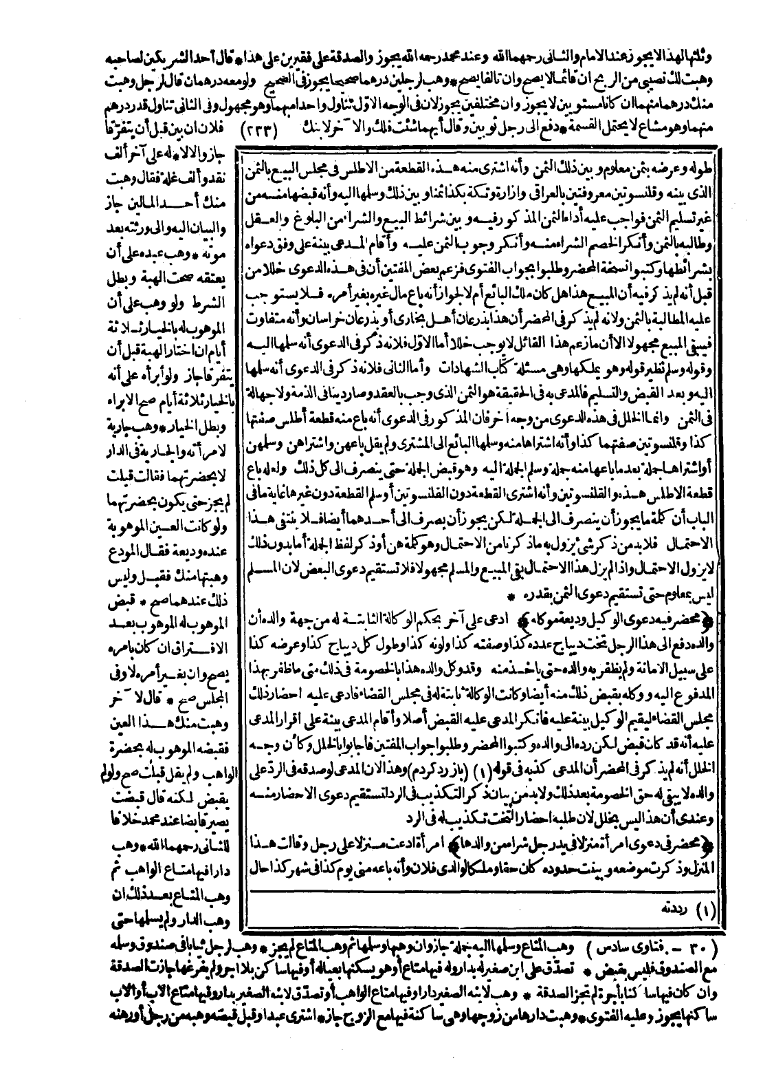 طُولَهُ وَعَرْضَهُ بِثَمَنٍ مَعْلُومٍ وَبَيَّنَ ذَلِكَ الثَّمَنَ، وَأَنَّهُ اشْتَرَى مِنْهُ هَذِهِ الْقِطْعَةَ مِنْ الْأَطْلَسِ فِي مَجْلِسِ الْبَيْعِ بِالثَّمَنِ الَّذِي بَيَّنَهُ وَقَلَنْسُوَتَيْنِ مَعْرُوفَتَيْنِ بِالْعِرَاقِيِّ وَإِزَارَةً وَتِكَّةً بِكَذَا ثَمَنًا وَبَيَّنَ ذَلِكَ وَسَلَّمَهَا إلَيْهِ، وَأَنَّهُ قَبَضَهَا مِنْهُ مِنْ غَيْرِ تَسْلِيمِ الثَّمَنِ فَوَاجِبٌ عَلَيْهِ أَدَاءُ الثَّمَنِ الْمَذْكُورِ فِيهِ وَبَيَّنَ شَرَائِطَ الْبَيْعِ وَالشِّرَاءِ مِنْ الْبُلُوغِ وَالْعَقْلِ وَطَالَبَهُ بِالثَّمَنِ، وَأَنْكَرَ الْخَصْمُ الشِّرَاءَ مِنْهُ، وَأَنْكَرَ وُجُوبَ الثَّمَنِ عَلَيْهِ وَأَقَامَ الْمُدَّعِي بَيِّنَةً عَلَى وَفْقِ دَعْوَاهُ بِشَرَائِطِهَا وَكَتَبُوا نُسْخَةَ الْمَحْضَرِ وَطَلَبُوا بِجَوَابِ الْفَتْوَى فَزَعَمَ بَعْضُ الْمُفْتِينَ أَنَّ فِي هَذِهِ الدَّعْوَى خَلَلًا مِنْ قِبَلِ أَنَّهُ لَمْ يَذْكُرْ فِيهِ أَنَّهُ الْمَبِيعُ هَذَا هَلْ كَانَ مِلْكَ الْبَائِعِ أَمْ لَا، لِجَوَازِ أَنَّهُ بَاعَ مَالَ غَيْرِهِ بِغَيْرِ أَمْرِهِ فَلَا يَسْتَوْجِبُ عَلَيْهِ الْمُطَالَبَةُ بِالثَّمَنِ، وَلِأَنَّهُ لَمْ يَذْكُرْ فِي الْمَحْضَرِ أَنَّ هَذَا بِذُرْعَانِ أَهْلِ بُخَارَى أَوْ بِذُرْعَانِ خُرَاسَانَ، وَأَنَّهُ مُتَفَاوِتٌ فَيَبْقَى الْمَبِيعُ مَجْهُولًا إلَّا أَنَّ مَا زَعَمَ هَذَا الْقَائِلُ لَا يُوجِبُ خَلَلًا، أَمَّا الْأَوَّلُ فَلِأَنَّهُ ذَكَرَ فِي الدَّعْوَى أَنَّهُ سَلَّمَهَا إلَيْهِ، وَقَوْلُهُ " وَسَلَّمَ " نَظِيرُ قَوْلِهِ " وَهُوَ يَمْلِكُهَا " وَهِيَ مَسْأَلَةُ كِتَابِ الشَّهَادَاتِ. وَأَمَّا الثَّانِي فَلِأَنَّهُ ذَكَرَ فِي الدَّعْوَى أَنَّهُ سَلَّمَهَا إلَيْهِ وَبَعْدَ الْقَبْضِ وَالتَّسْلِيمِ فَالْمُدَّعَى بِهِ فِي الْحَقِيقَةِ هُوَ الثَّمَنُ الَّذِي وَجَبَ بِالْعَقْدِ، وَصَارَ دَيْنًا فِي الذِّمَّةِ.