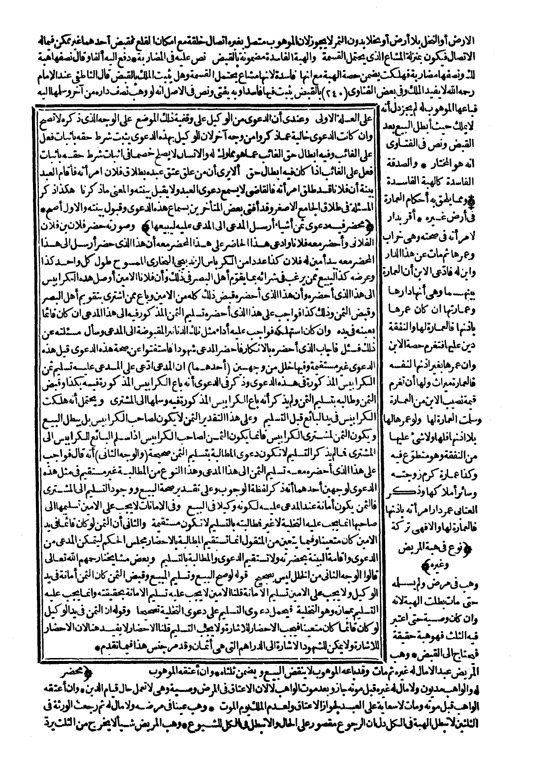(مَحْضَرٌ فِيهِ دَعْوَى ثَمَنِ أَشْيَاءَ أَرْسَلَ الْمُدَّعِي إلَى الْمُدَّعَى عَلَيْهِ لِيَبِيعَهَا) وَصُورَتُهُ حَضَرَ فُلَانُ بْنُ فُلَانٍ الْفُلَانِيُّ وَأَحْضَرَ مَعَهُ فُلَانًا وَادَّعَى هَذَا الْحَاضِرُ عَلَى هَذَا الْمُحْضَرِ مَعَهُ أَنَّ هَذَا الَّذِي حَضَرَ أَرْسَلَ إلَى هَذَا الْمُحْضَرِ مَعَهُ بِيَدِ أَمِينٍ لَهُ فُلَانٍ كَذَا عَدَدًا مِنْ الْكِرْبَاسِ الزَّنْدَبِيجِيِّ الْبُخَارِيِّ الْمَسْمُوحِ، طُولُ كُلِّ وَاحِدٍ كَذَا وَعَرْضُهُ كَذَا لِيَبِيعَ مِمَّنْ يَرْغَبُ فِي شِرَائِهِ بِمَا يَقُومُ أَهْلُ الْبَصَرِ فِي ذَلِكَ، وَأَنَّ فُلَانًا الْأَمِينَ أَوْصَلَ هَذِهِ الْكَرَابِيسَ إلَى هَذَا الَّذِي أَحْضَرَهُ، وَأَنَّ هَذَا الَّذِي أَحْضَرَهُ قَبَضَ ذَلِكَ كُلَّهُ مِنْ الْأَمِينِ وَبَاعَ مِمَّنْ اشْتَرَى بِتَقْوِيمِ أَهْلِ الْبَصَرِ وَقَبَضَ الثَّمَنَ، وَذَلِكَ كَذَا فَوَاجِبٌ عَلَى هَذَا الَّذِي أَحْضَرَهُ تَسْلِيمُ الثَّمَنِ الْمَذْكُورِ فِيهِ إلَى هَذَا الْمُدَّعِي إنْ كَانَ قَائِمًا بِعَيْنِهِ فِي يَدِهِ، وَإِنْ كَانَ اسْتَهْلَكَهُ فَوَاجِبٌ عَلَيْهِ أَدَاءُ مِثْلِ تِلْكَ الدَّنَانِيرِ الْمَقْبُوضَةِ إلَى الْمُدَّعِي وَسَأَلَ مَسْأَلَتَهُ عَنْ ذَلِكَ فَسَأَلَ فَأَجَابَ الَّذِي أَحْضَرَهُ بِالْإِنْكَارِ فَأَحْضَرَ الْمُدَّعِي شُهُودًا فَاسْتُفْتُوا عَنْ صِحَّةِ هَذِهِ الدَّعْوَى قِيلَ هَذِهِ الدَّعْوَى غَيْرُ مُسْتَقِيمَةٍ وَفِيهَا خَلَلٌ مِنْ وَجْهَيْنِ (أَحَدُهُمَا) أَنَّ الْمُدَّعِيَ ادَّعَى عَلَى الْمُدَّعَى عَلَيْهِ تَسْلِيمَ ثَمَنِ الْكَرَابِيسِ الْمَذْكُورَةِ فِي هَذِهِ الدَّعْوَى.