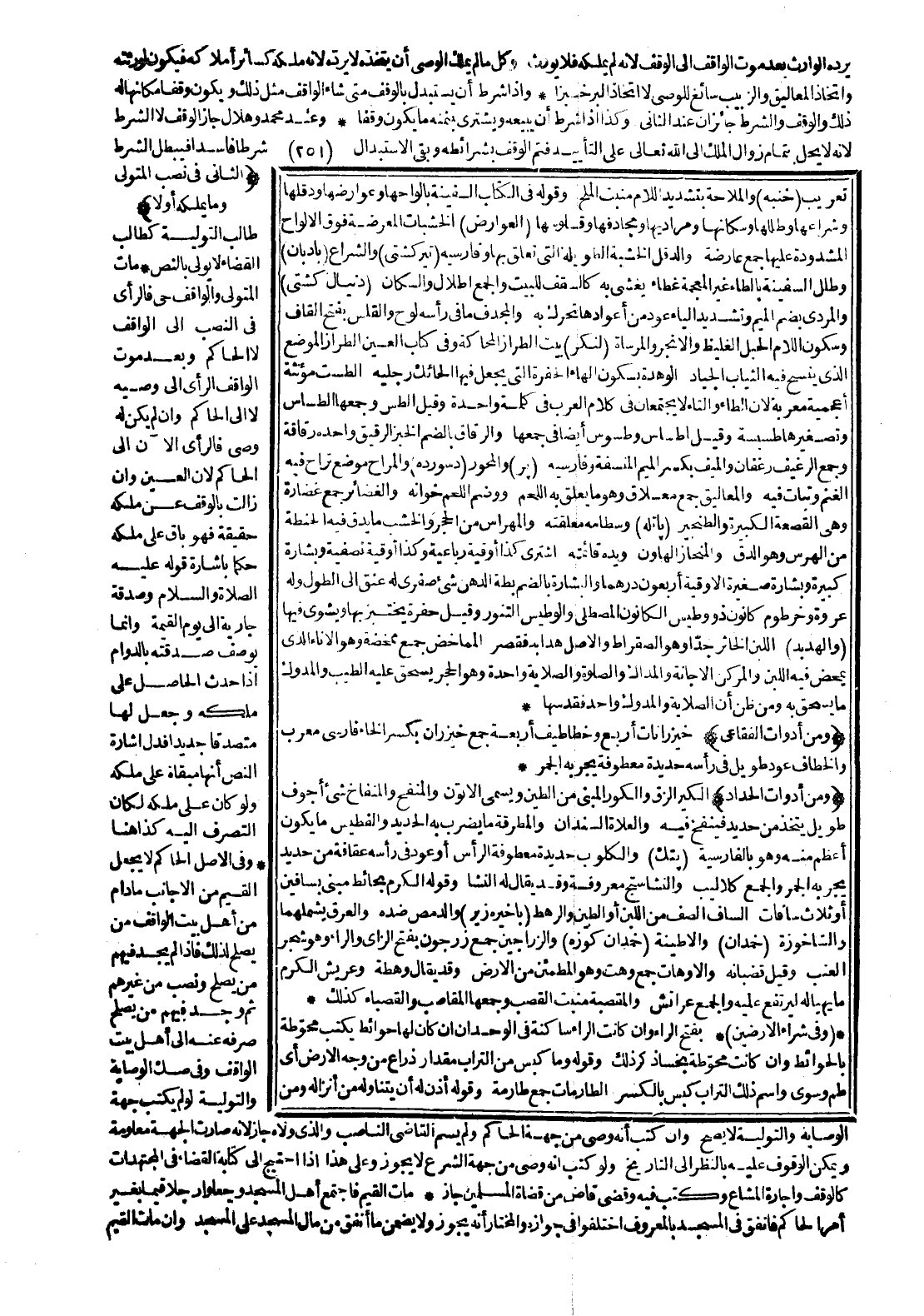 وَطَلَلُ السَّفِينَةِ بِالطَّاءِ غَيْرِ الْمُعْجَمَةِ غِطَاءٌ يُغْشَى بِهِ كَالسَّقْفِ لِلْبَيْتِ وَالْجَمْعُ إطْلَالٌ وَالسَّكَّانُ دنيال كَشَتِّي وَالْمُرْدِيِّ بِضَمِّ الْمِيمِ وَتَشْدِيدِ الْيَاءِ عُودٌ مِنْ أَعْوَادِهَا تُحَرَّكُ بِهِ وَالْمُجْدِفُ مَا فِي رَأْسِهِ لَوْحٌ وَالْقَلْسُ بِفَتْحِ الْقَافِ وَسُكُونِ اللَّامِ الْحَبْلُ الْغَلِيظُ وَالْأَتْجُرُ وَالْمُرْسَلَةُ (لِنُكُرِ) بَيْتِ الطِّرَازِ الْمُحَاكَّةِ، وَفِي كِتَابِ الْعَيْنِ الطِّرَازُ الْمَوْضِعُ الَّذِي يُنْسَخُ فِيهِ الثِّيَابُ الْجِيَادُ وَالْوَهْدَةُ بِسُكُونِ الْهَاءِ الْحُفْرَةُ الَّتِي يَجْعَلُ فِيهَا الْحَائِلُ رِجْلَيْهِ الطَّسْتُ مُؤَنَّثَةٌ أَعْجَمِيَّةٌ مُعَرَّبَةٌ؛ لِأَنَّ الطَّاءَ وَالتَّاءَ لَا يَجْتَمِعَانِ فِي كَلَامِ الْعَرَبِ فِي كَلِمَةٍ وَاحِدَةٍ، وَقِيلَ: الطَّسُّ وَجَمْعُهَا الطِّسَاسُ وَتَصْغِيرُهَا طُسَيْسَةُ، وَقِيلَ لِطَسَّاسِ وَطُسُوسٍ أَيْضًا فِي جَمْعِهَا وَالرِّقَاقُ بِالضَّمِّ الْخُبْزُ الرَّقِيقُ وَاحِدُهُ رُقَاقَةٌ وَجَمْعُ رَغِيفٍ رُغْفَانٌ وَالمِيفُ بِكَسْرِ الْمِيمِ الْمِنْسَفَةُ وَفَارِسِيَّةٌ (بِرّ) وَالْمِحْوَرُ (دسورة) وَالْمِرَاحُ مَوْضِعُ تُرَاحُ فِيهِ الْغَنَمُ وَتُبَاتُ فِيهِ وَالْمَعَالِيقُ جَمْعُ مِعْلَاقٍ وَهُوَ مَا يُعَلَّقُ بِهِ اللَّحْمُ وَوَضْمُ اللَّحْمِ خَوَّانَةٌ وَالْغَضَائِرُ جَمْعُ غَضَارَةٍ وَهِيَ الْقَصْعَةُ الْكَبِيرَةُ وَالطَّخَبِيرُ (بَاتِلُهُ) وَسِطَامُهُ مُعَلَّقَتُهُ وَالْمِهْرَاسُ مِنْ الْحَجَرِ وَالْخَشَبِ مَا يُدَقُّ فِيهِ الْحِنْطَةُ مِنْ الْهَرْسِ، وَهُوَ الدَّقُّ وَالْمِنْحَازُ الْهَاوُنُ وَيَدُهُ قَائِمَتُهُ اشْتَرَى كَذَا أُوقِيَّةً رَبَاعِيَةً وَكَذَا أُوقِيَّةً نِصْفِيَّةً وَبُشَارَةً كَبِيرَةً وبشارة صَغِيرَةً الْأُوقِيَّةُ أَرْبَعُونَ دِرْهَمًا الْبُشَارَةُ بِالضَّمِّ بَطَّةُ الدُّهْنِ شَيْءٌ صُفْرِي لَهُ عِتْقٌ إلَى الطُّولِ وَلَهُ عُرْوَةٌ وَخُرْطُومٌ كَانُونُ ذُو وَطِيسٍ الْكَانُونُ الْمُصْطَلَى وَالْوَطِيسُ التَّنُّورُ وَقِيلَ حُفْرَةٌ يُخْتَبَرُ بِهَا وَيُشْوَى فِيهَا وَالْهُدَبِدُ اللَّبَنُ الْخَاثِرُ جِدًّا وَهُوَ الصِّقْرَاطُ وَالْأَصْلُ هَدَابِدُ فَقُصِرَ الْمَمَاخِضُ جَمْعُ مِمْخَضَةٍ وَهُوَ الْإِنَاءُ الَّذِي يُمْخَضُ فِيهِ اللَّبَنُ وَالْمَرَاكِنُ الْأَجَّانَةُ وَالْمَدَاكُ وَالصِّلْوَةُ وَالصَّلَايَةُ وَاحِدَةٌ، وَهُوَ الْحَجَرُ يُسْحَقُ عَلَيْهِ الطِّيبُ وَالْمِدْوَكُ مَا يُسْحَقُ بِهِ وَمَنْ ظَنَّ أَنَّ الصَّلَابَةَ وَالْمِدْوَكَ وَاحِدٌ فَقَدْ سَهَا.