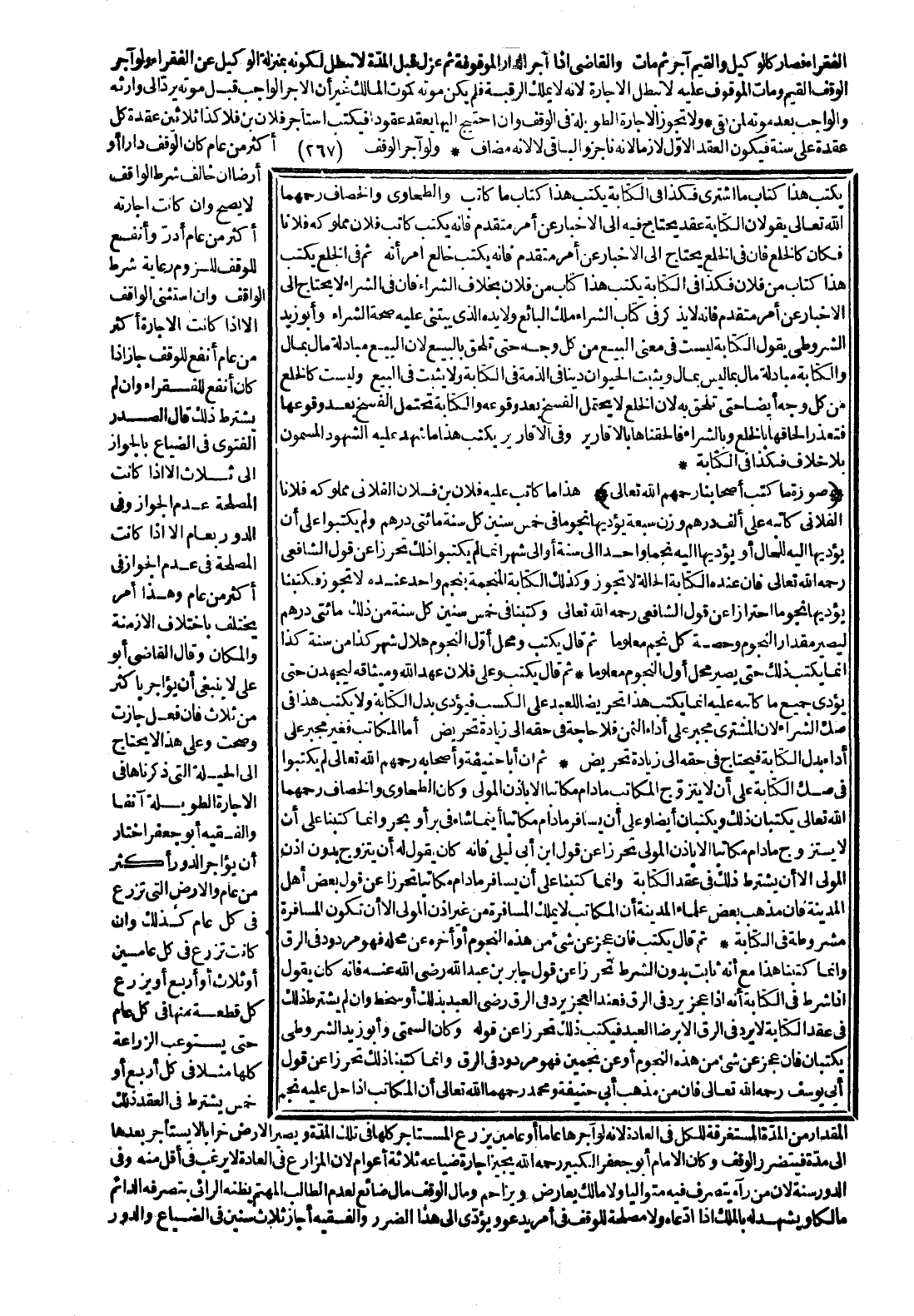 وَإِنْ لَمْ يَشْتَرِطْ ذَلِكَ فِي عَقْدِ الْكِتَابَةِ لَا يُرَدُّ فِي الرِّقِّ إلَّا بِرِضَا الْعَبْدِ فَيَكْتُبُ ذَلِكَ تَحَرُّزًا عَنْ قَوْلِهِ، وَكَانَ السَّمْتِيُّ وَأَبُو زَيْدٍ الشُّرُوطِيُّ يَكْتُبَانِ، فَإِنْ عَجَزَ عَنْ شَيْءٍ مِنْ هَذِهِ النُّجُومِ أَوْ عَنْ نَجْمَيْنِ فَهُوَ مَرْدُودٌ فِي الرِّقِّ، وَإِنَّمَا كَتَبْنَا ذَلِكَ تَحَرُّزًا عَنْ قَوْلِ أَبِي يُوسُفَ - رَحِمَهُ اللَّهُ تَعَالَى - فَإِنَّ مِنْ مَذْهَبِ أَبِي حَنِيفَةَ وَمُحَمَّدٍ رَحِمِهِمَا اللَّه تَعَالَى - أَنَّ الْمُكَاتَبَ إذَا حَلَّ عَلَيْهِ نَجْمٌ