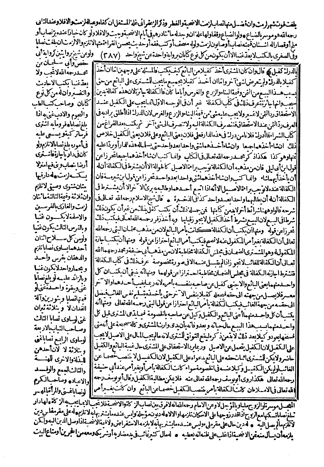 قَالَ شَيْخُ الْإِسْلَامِ - رَحِمَهُ اللَّهُ تَعَالَى - فِي شَرْحِهِ قَالُوا وَهَا هُنَا شَرَائِطُ أُخَرُ لَا بُدَّ مِنْ كِتَابَتِهَا فَمِنْ جُمْلَةِ ذَلِكَ أَنْ يَكْتُبَ كُفِلَ بِذَلِكَ مِنْ غَيْرِ أَنْ يَكُونَ ذَلِكَ شَرْطًا فِي الْبَيْعِ؛ لِأَنَّ الْبَيْعَ بِشَرْطِ أَخْذِ الْكَفِيلِ لَا يَجُوزُ قِيَاسًا وَبِهِ أَخَذَ زُفَرُ - رَحِمَهُ اللَّهُ تَعَالَى - فَيُكْتَبُ ذَلِكَ تَحَرُّزًا عَنْ قَوْلِهِ وَمِنْهَا أَنْ يُكْتَبَ أَنَّ الْكَفَالَةَ كَانَتْ بِأَمْرِ الْبَائِعِ؛ لِأَنَّ مِنْ مَذْهَبِ عُثْمَانَ الْبَتِّيِّ - رَحِمَهُ اللَّهُ تَعَالَى - أَنَّ الْكَفَالَةَ بِغَيْرِ أَمْرِ الْمَكْفُولِ عَنْهُ لَا تَصِحُّ فَيُكْتَبُ أَمْرُ الْبَائِعِ احْتِرَازًا عَنْ قَوْلِهِ وَمِنْهَا أَنْ يُكْتَبَ إجَازَةُ الْمَكْفُولِ لَهُ وَهُوَ الْمُشْتَرِي الضَّمَانَ فِي مَجْلِسِ الْكَفَالَةِ مُخَاطَبَةً؛ لِأَنَّ مِنْ مَذْهَبِ أَبِي حَنِيفَةَ وَمُحَمَّدٍ - رَحِمَهُمَا اللَّهُ تَعَالَى - أَنَّ الْكَفَالَةَ لِلْغَائِبِ لَا تَجُوزُ إذَا لَمْ يُقْبَلْ عَنْهُ إلَّا فِي صُورَةٍ مَخْصُوصَةٍ، عُرِفَ ذَلِكَ فِي كِتَابِ الْكَفَالَةِ فَتُشْتَرَطُ إجَازَتُهُ الْكَفَالَةَ فِي مَجْلِسِ الضَّمَانِ مُخَاطَبَةً احْتِرَازًا عَنْ قَوْلِهِمَا وَمِنْهَا أَنَّهُ يَنْبَغِي أَنْ يُكْتَبَ أَنَّ كُلَّ وَاحِدٍ مِنْهُمَا - يَعْنِي الْبَائِعَ وَالْأَجْنَبِيَّ - كَفِيلٌ عَنْ صَاحِبِهِ بِنَفْسِهِ بِأَمْرِهِ؛ لِأَنَّهُ رُبَّمَا يَغِيبُ أَحَدُهُمَا وَالْآخَرُ مُعْسِرٌ فَلَا يَصِلُ مِنْ جِهَتِهِ إلَى حَقِّهِ فَيَجْعَلُهُ كَفِيلًا بِنَفْسِ الْآخَرِ حَتَّى يَأْخُذَهُ بِتَسْلِيمِ نَفْسِ الْغَائِبِ فَيَصِلُ إلَى حَقِّهِ مِنْ جِهَةِ الْغَائِبِ فَيَكْتُبُ الْكَفَالَةَ بِأَمْرِ الْبَائِعِ احْتِرَازًا عَنْ قَوْلِ الْبَتِّيِّ - رَحِمَهُ اللَّهُ تَعَالَى -.