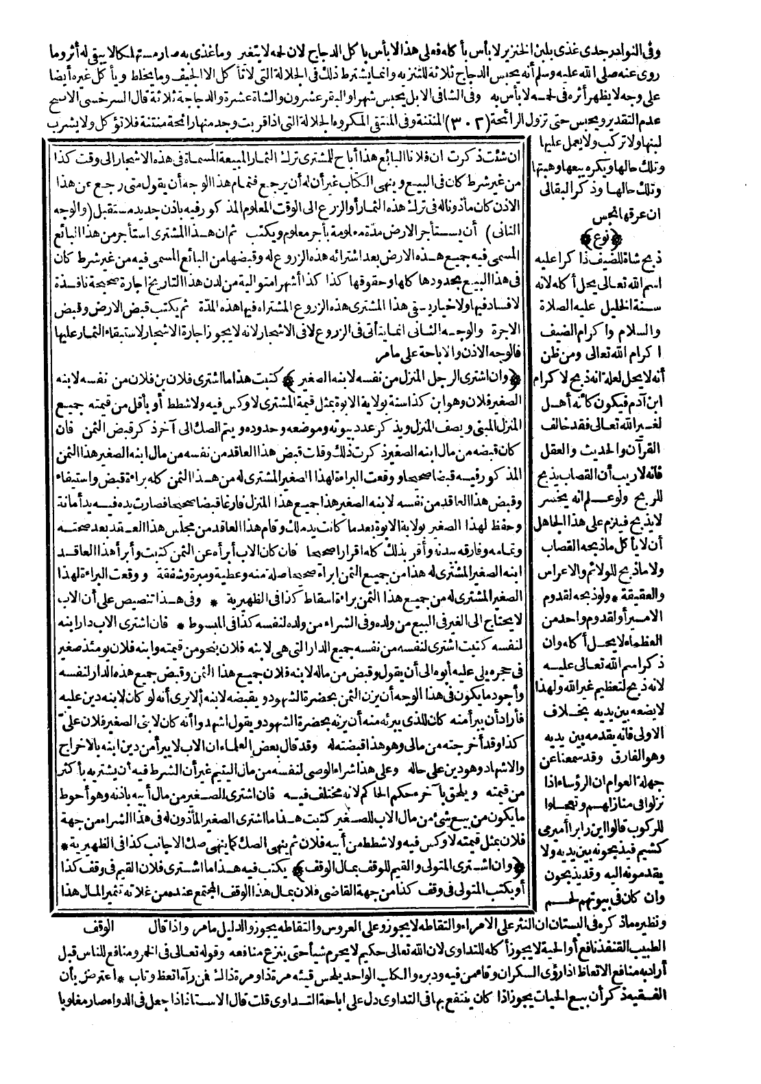 (وَإِنْ اشْتَرَى الْمُتَوَلِّي وَالْقَيِّمُ لِلْوَقْفِ بِمَالِ الْوَقْفِ) يَكْتُبُ فِيهِ: هَذَا مَا اشْتَرَى فُلَانٌ الْقَيِّمُ فِي وَقْفِ كَذَا أَوْ يَكْتُبُ الْمُتَوَلِّي فِي وَقْفِ كَذَا مِنْ جِهَةِ الْقَاضِي فُلَانٍ بِمَالِ هَذَا الْوَقْفِ الْمُجْتَمِعِ عِنْدَهُ مِنْ غَلَّاتِهِ تَثْمِيرًا لِمَالِ هَذَا