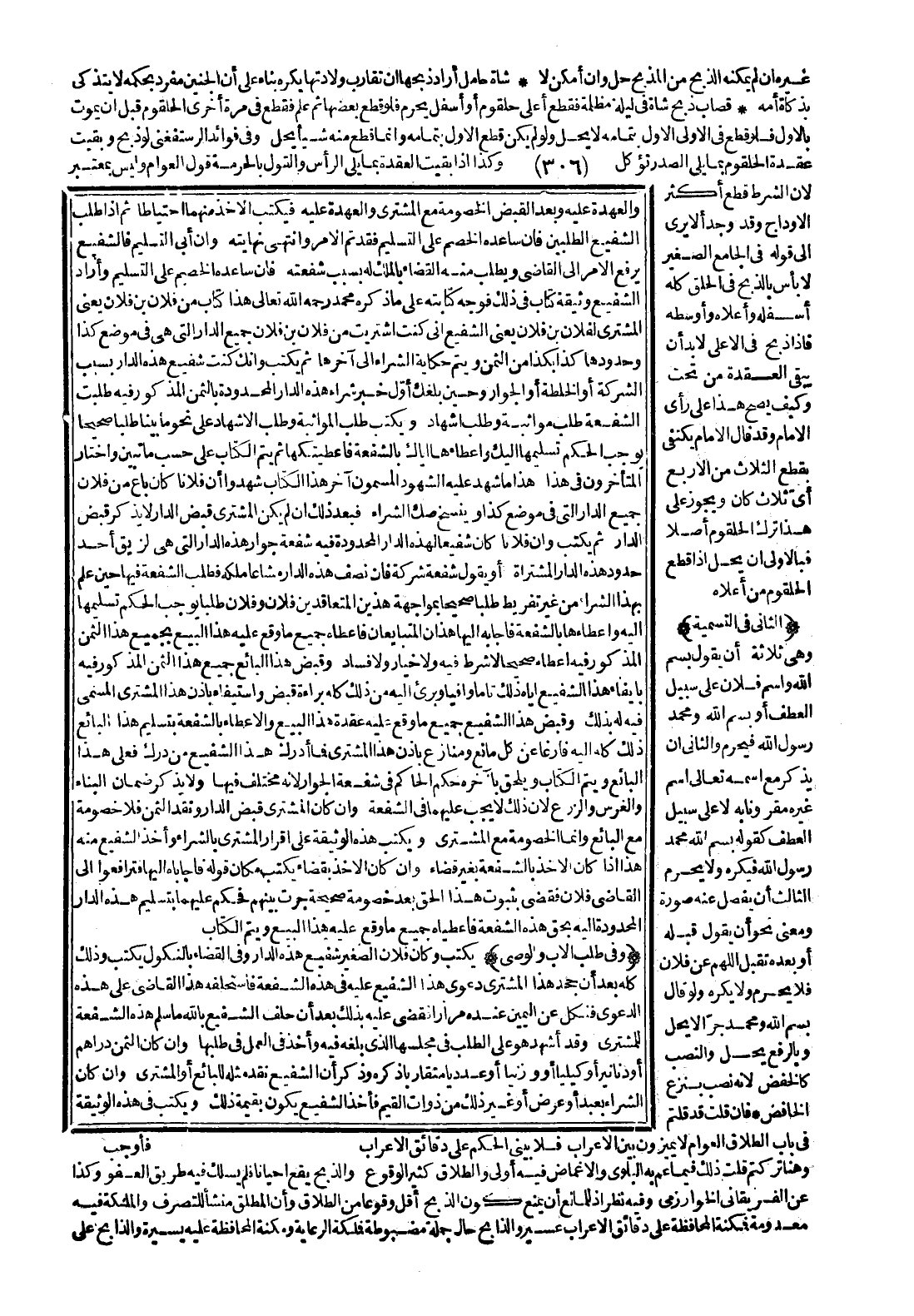وَاخْتَارَ الْمُتَأَخِّرُونَ فِي هَذَا: هَذَا مَا شَهِدَ عَلَيْهِ الشُّهُودُ وَالْمُسَمَّوْنَ آخِرَ هَذَا الْكِتَابَ شَهِدُوا أَنَّ فُلَانًا كَانَ بَاعَ مِنْ فُلَانٍ جَمِيعَ الدَّارِ الَّتِي فِي مَوْضِعِ كَذَا وَيَنْسَخُ صَكَّ الشِّرَاءِ فَبَعْدَ ذَلِكَ إنْ لَمْ يَكُنْ الْمُشْتَرِي قَبَضَ الدَّارَ لَا يَذْكُرُ قَبْضَ الدَّارِ ثُمَّ يَكْتُبُ: وَإِنَّ فُلَانًا كَانَ شَفِيعًا لِهَذِهِ الدَّارِ الْمَحْدُودَةِ فِيهِ شُفْعَةَ جِوَارِ هَذِهِ الدَّارِ الَّتِي هِيَ لَزِيقُ أَحَدِ حُدُودِ هَذِهِ الدَّارِ الْمُشْتَرَاةِ أَوْ يَقُولُ: شُفْعَةَ شَرِكَةٍ فَإِنَّ نِصْفَ هَذِهِ الدَّارِ مَشَاعًا مِلْكُهُ فَطَلَبُ الشُّفْعَةِ فِيهَا حِينَ عَلِمَ بِهَذَا الشِّرَاءِ مِنْ غَيْرِ تَفْرِيطٍ طَلَبًا صَحِيحًا بِمُوَاجَهَةِ هَذَيْنِ الْمُتَعَاقِدَيْنِ فُلَانٍ وَفُلَانٍ طَلَبًا يُوجِبُ الْحُكْمُ تَسْلِيمَهَا إلَيْهِ وَإِعْطَاءَهَا بِالشُّفْعَةِ فَأَجَابَهُ إلَيْهَا هَذَانِ الْمُتَبَايِعَانِ فَأَعْطَاهُ جَمِيعَ مَا وَقَعَ عَلَيْهِ هَذَا الْبَيْعُ بِجَمِيعِ هَذَا الثَّمَنِ الْمَذْكُورِ فِيهِ إعْطَاءً صَحِيحًا لَا شَرْطَ فِيهِ وَلَا خِيَارَ وَلَا فَسَادَ وَقَبَضَ هَذَا الْبَائِعُ جَمِيعَ هَذَا الثَّمَنِ الْمَذْكُورِ فِيهِ بِإِيفَاءِ هَذَا الشَّفِيعِ إيَّاهُ ذَلِكَ تَامًّا وَافِيًا وَبَرِئَ إلَيْهِ مِنْ ذَلِكَ كُلِّهِ بَرَاءَةَ قَبْضٍ وَاسْتِيفَاءٍ بِإِذْنِ هَذَا الْمُشْتَرِي الْمُسَمَّى فِيهِ لَهُ بِذَلِكَ وَقَبَضَ هَذَا الشَّفِيعُ جَمِيعَ مَا وَقَعَ عَلَيْهِ عُقْدَةُ هَذَا الْبَيْعِ وَالْإِعْطَاءِ بِالشُّفْعَةِ بِتَسْلِيمِ هَذَا الْبَائِعِ ذَلِكَ كُلَّهُ إلَيْهِ فَارِغًا عَنْ كُلِّ مَانِعٍ وَمُنَازِعٍ بِإِذْنِ هَذَا الْمُشْتَرِي فَمَا أَدْرَكَ هَذَا الشَّفِيعُ مِنْ دَرْكٍ فَعَلَى هَذَا الْبَائِعِ وَيُتِمُّ الْكِتَابَ وَيُلْحِقُ بِآخِرِهِ حُكْمَ الْحَاكِمِ فِي شُفْعَةِ الْجِوَارِ؛ لِأَنَّهُ مُخْتَلَفٌ فِيهَا وَلَا يَذْكُرُ ضَمَانَ الْبِنَاءِ وَالْغَرْسِ وَالزَّرْعِ؛ لِأَنَّ ذَلِكَ لَا يَجِبُ عَلَيْهِمَا فِي الشُّفْعَةِ وَإِنْ كَانَ الْمُشْتَرِي قَبَضَ الدَّارَ وَنَقَدَ الثَّمَنَ فَلَا خُصُومَةَ مَعَ الْبَائِعِ وَإِنَّمَا الْخُصُومَةُ مَعَ الْمُشْتَرِي وَيَكْتُبُ هَذِهِ الْوَثِيقَةَ عَلَى إقْرَارِ الْمُشْتَرِي بِالشِّرَاءِ، وَأَخَذَ الشَّفِيعُ مِنْهُ هَذَا إذَا كَانَ الْأَخْذُ بِالشُّفْعَةِ بِغَيْرِ قَضَاءٍ وَإِنْ كَانَ الْأَخْذُ بِقَضَاءٍ يَكْتُبُ مَكَانَ قَوْلِهِ فَأَجَابَاهُ إلَيْهَا فَتَرَافَعُوا إلَى الْقَاضِي فُلَانٍ فَقَضَى بِثُبُوتِ هَذَا الْحَقِّ بَعْدَ خُصُومَةٍ صَحِيحَةٍ جَرَتْ بَيْنَهُمْ فَحَكَمَ عَلَيْهِمَا بِتَسْلِيمِ هَذِهِ الدَّارِ الْمَحْدُودَةِ إلَيْهِ بِحَقِّ هَذِهِ الشُّفْعَةِ فَأَعْطَيَاهُ جَمِيعَ مَا وَقَعَ عَلَيْهِ هَذَا الْبَيْعُ وَيُتِمُّ الْكِتَابَ.