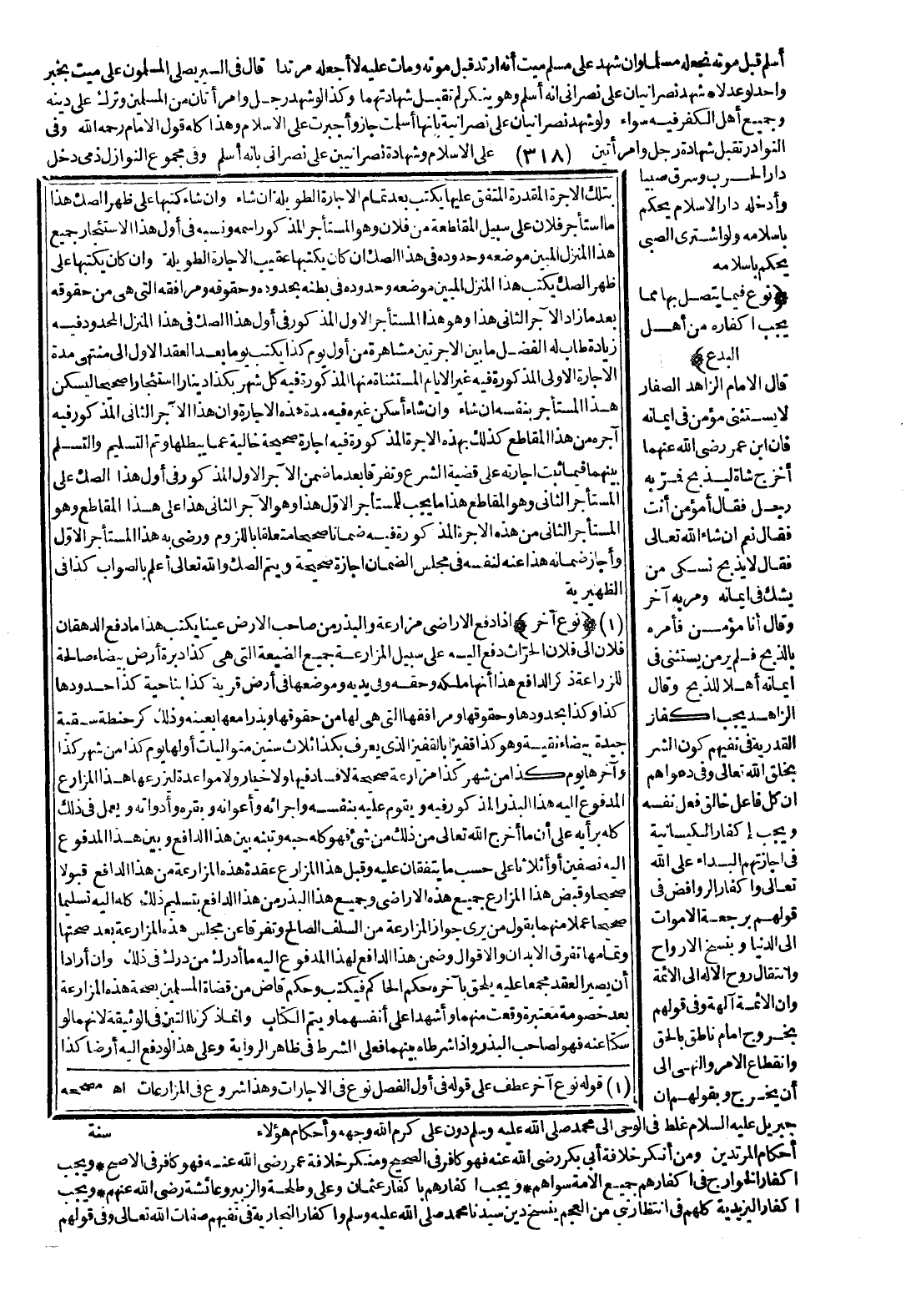 (نَوْعٌ آخَرُ) إذَا دَفَعَ الْأَرَاضِيَ مُزَارَعَةً وَالْبَذْرُ مِنْ صَاحِبِ الْأَرْضِ عَيْنًا يَكْتُبُ: هَذَا مَا دَفَعَ الدِّهْقَانُ فُلَانٌ إلَى فُلَانٍ الْحَرَّاثِ دَفَعَ إلَيْهِ عَلَى سَبِيلِ الْمُزَارَعَةِ جَمِيعَ الضَّيْعَةِ الَّتِي هِيَ كَذَا دَبْرَةَ أَرْضٍ بَيْضَاءَ صَالِحَةٍ لِلزِّرَاعَةِ ذَكَرَ الدَّافِعُ هَذَا أَنَّهَا مِلْكُهُ وَحَقُّهُ وَفِي يَدَيْهِ وَمَوْضِعُهَا فِي أَرْضِ قَرْيَةِ كَذَا بِنَاحِيَةِ كَذَا حُدُودُهَا كَذَا وَكَذَا بِحُدُودِهَا وَحُقُوقِهَا وَمَرَافِقِهَا الَّتِي هِيَ لَهَا مِنْ حُقُوقِهَا وَبَذْرًا مَعَهَا بِعَيْنِهِ وَذَلِكَ كُرُّ حِنْطَةٍ سَقِيَّةٍ جَيِّدَةٍ بَيْضَاءَ نَقِيَّةٍ وَهُوَ كَذَا قَفِيزًا بِالْقَفِيزِ الَّذِي يُعْرَفُ بِكَذَا ثَلَاثَ سِنِينَ مُتَوَالِيَاتٍ أَوَّلُهَا يَوْمُ كَذَا مِنْ شَهْرِ كَذَا وَآخِرُهَا يَوْمُ كَذَا مِنْ شَهْرِ كَذَا مُزَارَعَةً صَحِيحَةً لَا فَسَادَ فِيهَا وَلَا خِيَارَ وَلَا مُوَاعَدَةَ لِيَزْرَعَهَا هَذَا الْمَزَارِعُ الْمَدْفُوعُ إلَيْهِ هَذَا الْبَذْرُ الْمَذْكُورُ فِيهِ وَيَقُومُ عَلَيْهِ بِنَفْسِهِ وَأُجَرَائِهِ وَأَعْوَانِهِ وَبَقَرِهِ وَأَدَوَاتِهِ وَيَعْمَلُ فِي ذَلِكَ كُلِّهِ بِرَأْيِهِ عَلَى أَنَّ مَا أَخْرَجَ اللَّهُ - تَعَالَى - مِنْ ذَلِكَ مِنْ شَيْءٍ فَهُوَ كُلُّهُ حَبُّهُ وَتِبْنُهُ بَيْنَ هَذَا الدَّافِعِ وَبَيْنَ هَذَا الْمَدْفُوعِ إلَيْهِ نِصْفَيْنِ أَوْ أَثْلَاثًا عَلَى حَسَبِ مَا يَتَّفِقَانِ عَلَيْهِ وَقَبِلَ هَذَا الْمُزَارِعُ عُقْدَةَ هَذِهِ الْمُزَارَعَةِ مِنْ هَذَا الدَّافِعِ قَبُولًا صَحِيحًا وَقَبَضَ هَذَا الْمَزَارِعُ جَمِيعَ هَذِهِ الْأَرَاضِي وَجَمِيعَ هَذَا الْبَذْرِ مِنْ هَذَا الدَّافِعِ بِتَسْلِيمِ ذَلِكَ كُلِّهِ إلَيْهِ تَسْلِيمًا صَحِيحًا عَمَلًا مِنْهُمَا بِقَوْلِ مَنْ يَرَى جَوَازَ الْمُزَارَعَةِ مِنْ السَّلَفِ الصَّالِحِ وَتَفَرَّقَا عَنْ مَجْلِسِ هَذِهِ الْمُزَارَعَةِ بَعْدَ صِحَّتِهَا وَتَمَامِهَا تَفَرُّقَ الْأَبْدَانِ وَالْأَقْوَالِ وَضَمِنَ هَذَا الدَّافِعُ لِهَذَا الْمَدْفُوعِ إلَيْهِ مَا أَدْرَكَ مِنْ دَرْكٍ فِي ذَلِكَ.