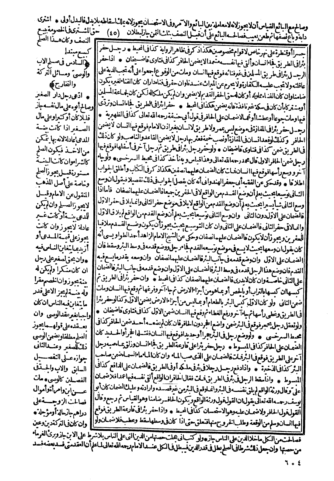 رَجُلٌ حَفَرَ بِئْرًا فِي الْمَفَازَةِ فِي مَوْضِعٍ لَيْسَ بِمَمَرٍّ وَلَا طَرِيقٍ لِإِنْسَانٍ بِغَيْرِ إذْنِ الْإِمَامِ فَوَقَعَ فِيهَا إنْسَانٌ لَا يَضْمَنُ الْحَافِرُ، وَكَذَلِكَ لَوْ قَعَدَ إنْسَانٌ فِي الْمَفَازَةِ، أَوْ نَصَبَ خَيْمَةً فَعَثَرَ بِهَا رَجُلٌ لَا يَضْمَنُ الْقَاعِدُ وَالنَّاصِبُ وَلَوْ كَانَ ذَلِكَ فِي الطَّرِيقِ ضَمِنَ كَذَا فِي فَتَاوَى قَاضِي خَانْ.