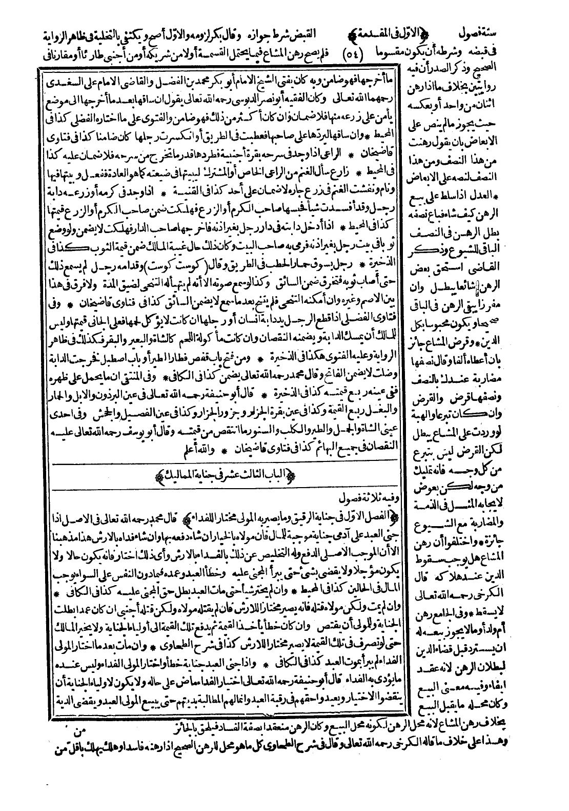 [الْبَابُ الثَّالِثَ عَشَرَ فِي جِنَايَةِ الْمَمَالِيكِ وَفِيهِ ثَلَاثَةُ فُصُولٍ]