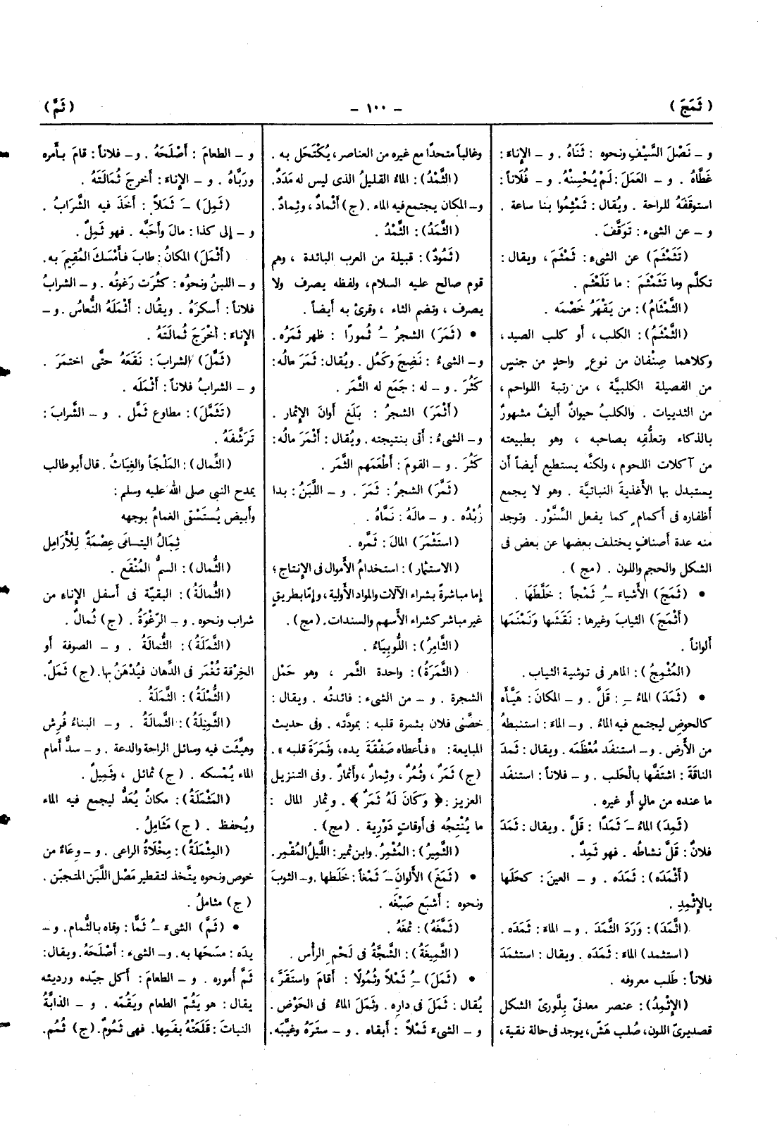 الشَّيْء ثما وَقَاه بالثمام وَيَده مسحها بِهِ وَالشَّيْء أصلحه وَيُقَال ثمَّ أُمُوره وَالطَّعَام أكل جيده ورديئه يُقَال هُوَ يثم الطَّعَام ويقمه وَالدَّابَّة النَّبَات قلعته بفمها فَهِيَ ثموم (ج) ثمم