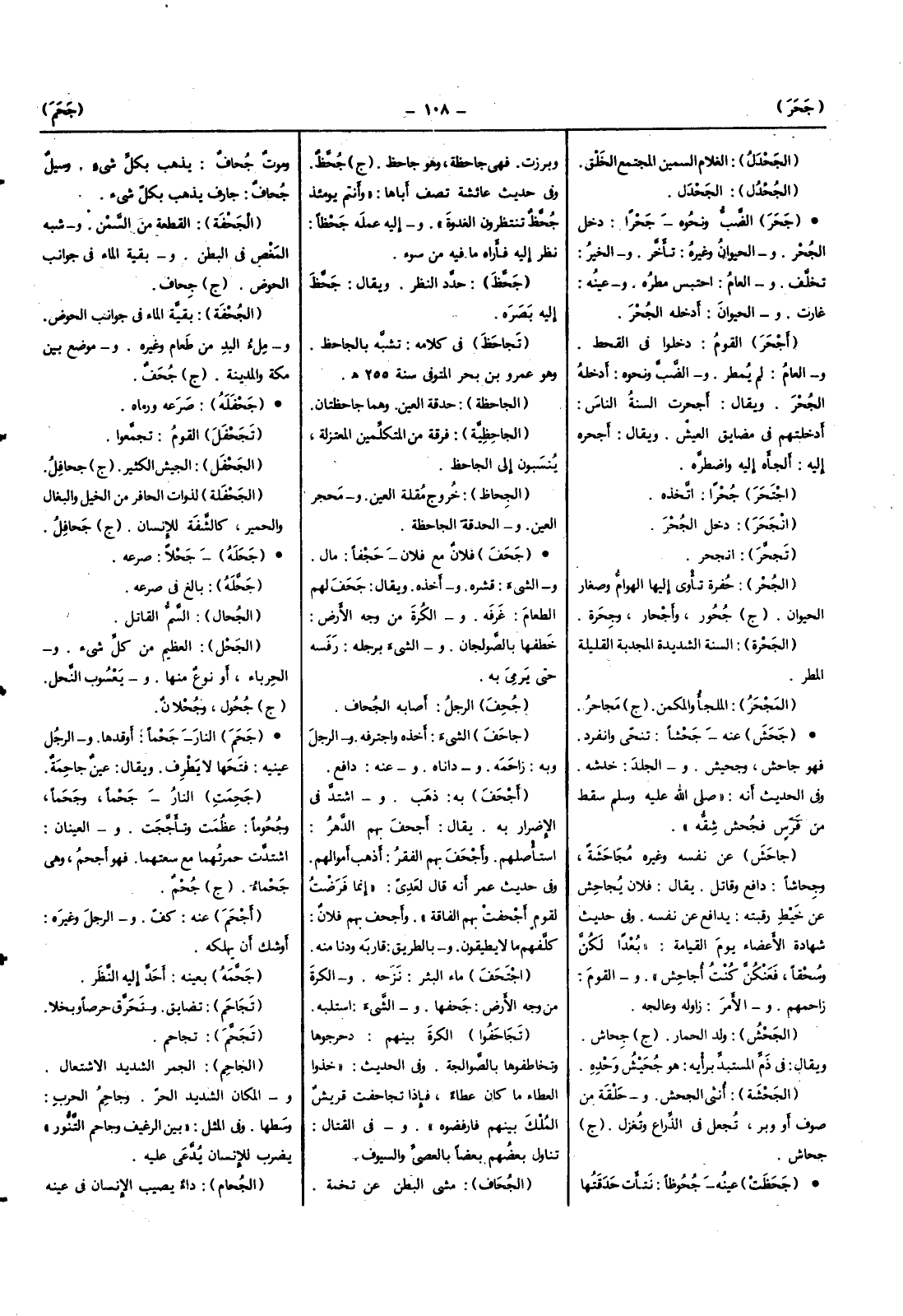 (الْجحْفَة) الْقطعَة من السّمن وَشبه المغص فِي الْبَطن وَبَقِيَّة المَاء فِي جَوَانِب الْحَوْض (ج) جحاف