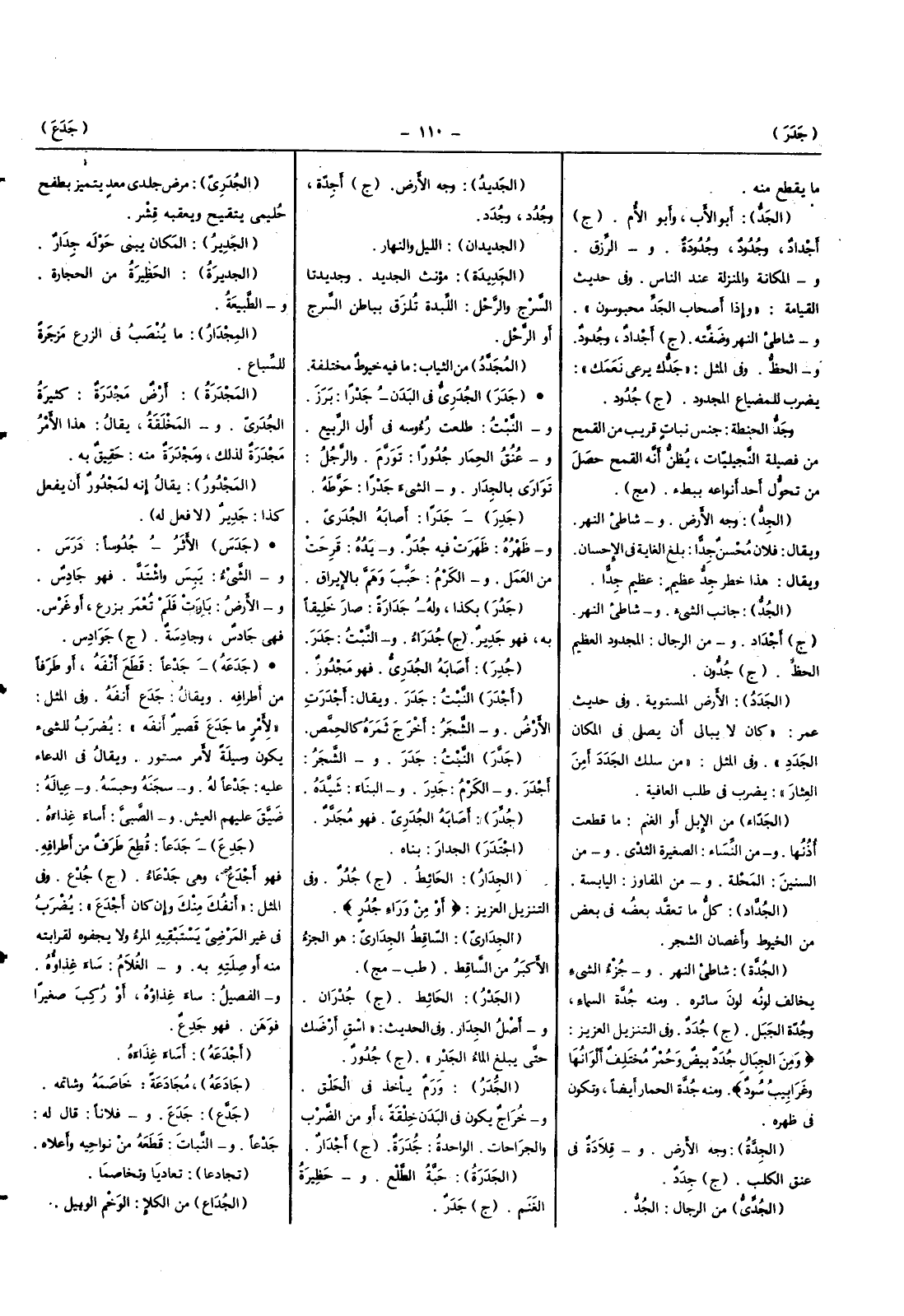 (جدر) النبت جدر وَالشَّجر أَجْدَر وَالْكَرم جدر وَالْبناء شيده