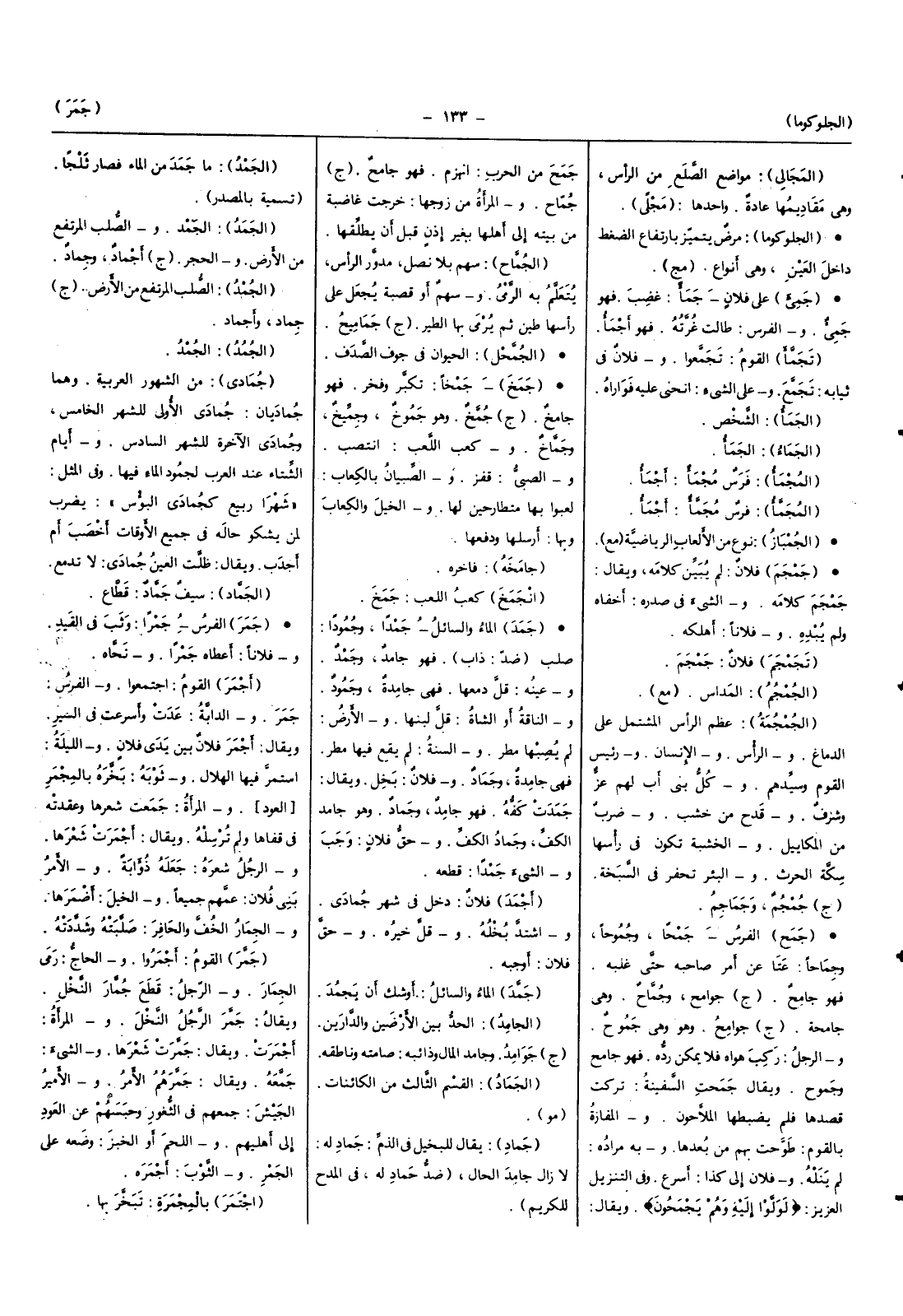 (الجمد) الصلب الْمُرْتَفع من الأَرْض (ج) جماد وأجماد