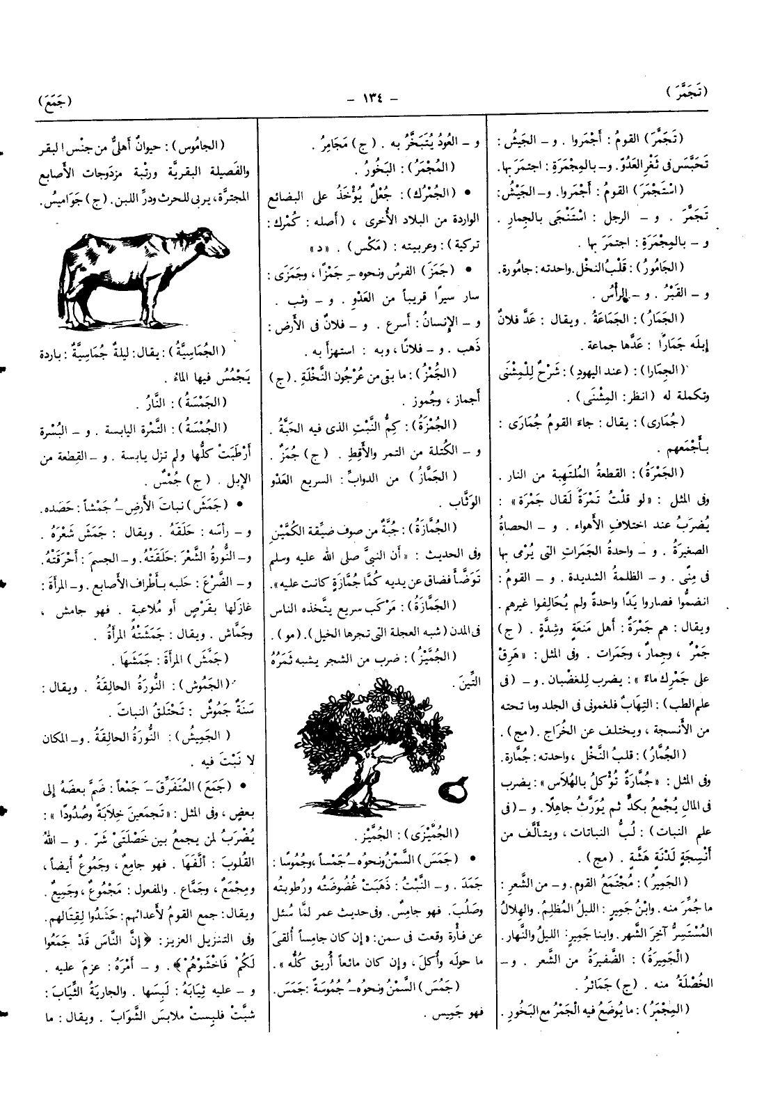 (الجاموس) حَيَوَان أَهلِي من جنس الْبَقر والفصيلة البقرية ورتبة مزدوجات الْأَصَابِع المجترة يربى للحرث ودر اللَّبن (ج) جواميس