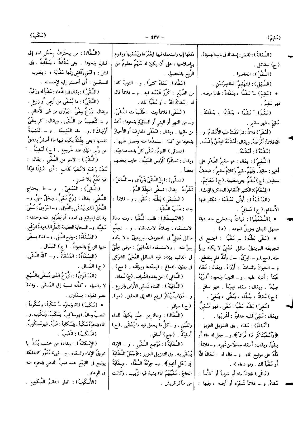 (المسقاة) وَآلَة السَّقْي (ج) المساقي