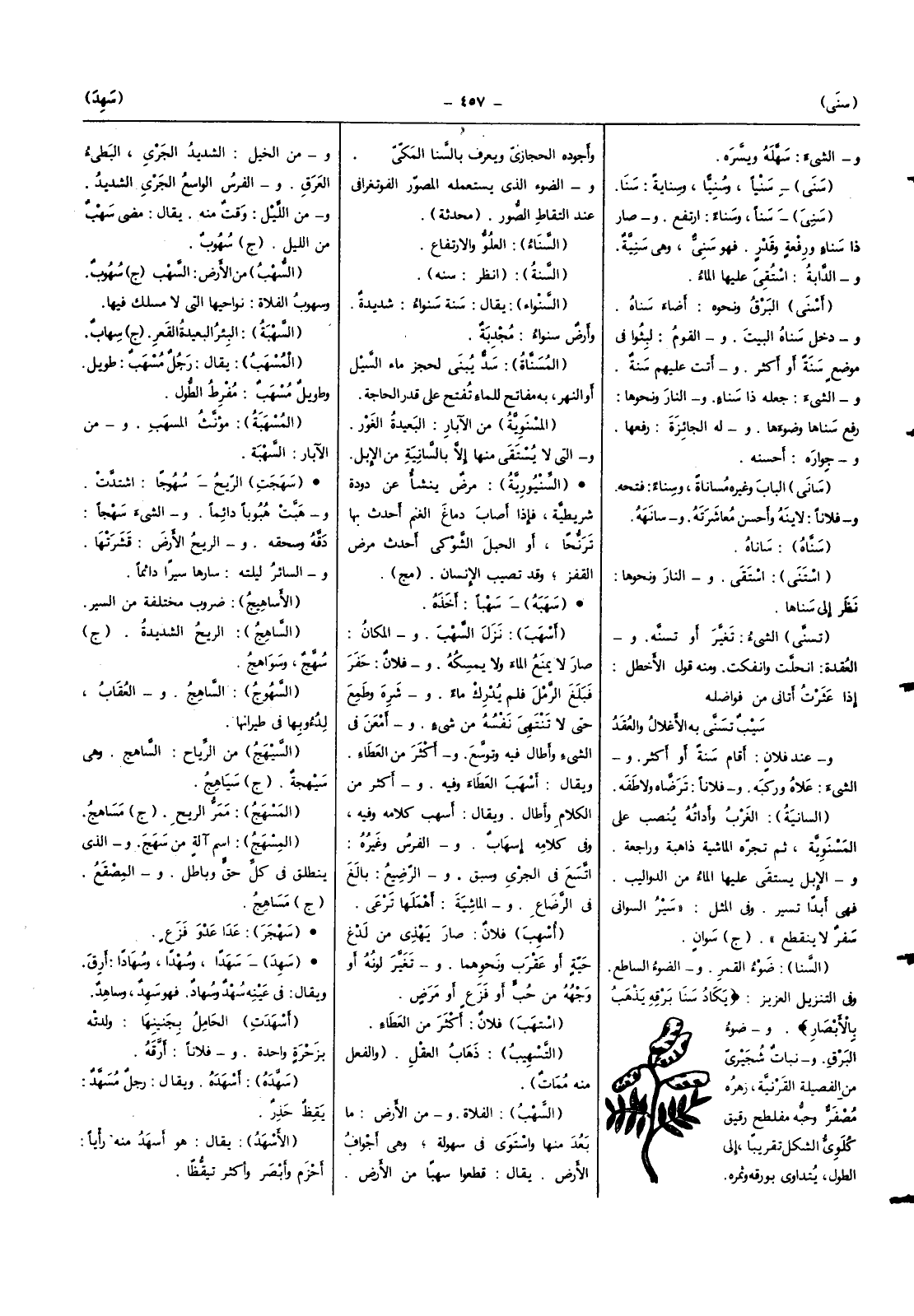 (السنا) ضوء الْقَمَر والضوء الساطع وَفِي التَّنْزِيل الْعَزِيز {يكَاد سنا برقه يذهب بالأبصار} وضوء الْبَرْق ونبات شجيري من الفصيلة القرنية زهره مصفر وحبه مفلطح رَقِيق كلوي الشكل تَقْرِيبًا إِلَى الطول يتداوى بورقه وثمره وأجوده الْحِجَازِي وَيعرف بالسنا الْمَكِّيّ والضوء الَّذِي يَسْتَعْمِلهُ المصور الفوتغرافي عِنْد الْتِقَاط الصُّور (محدثة)