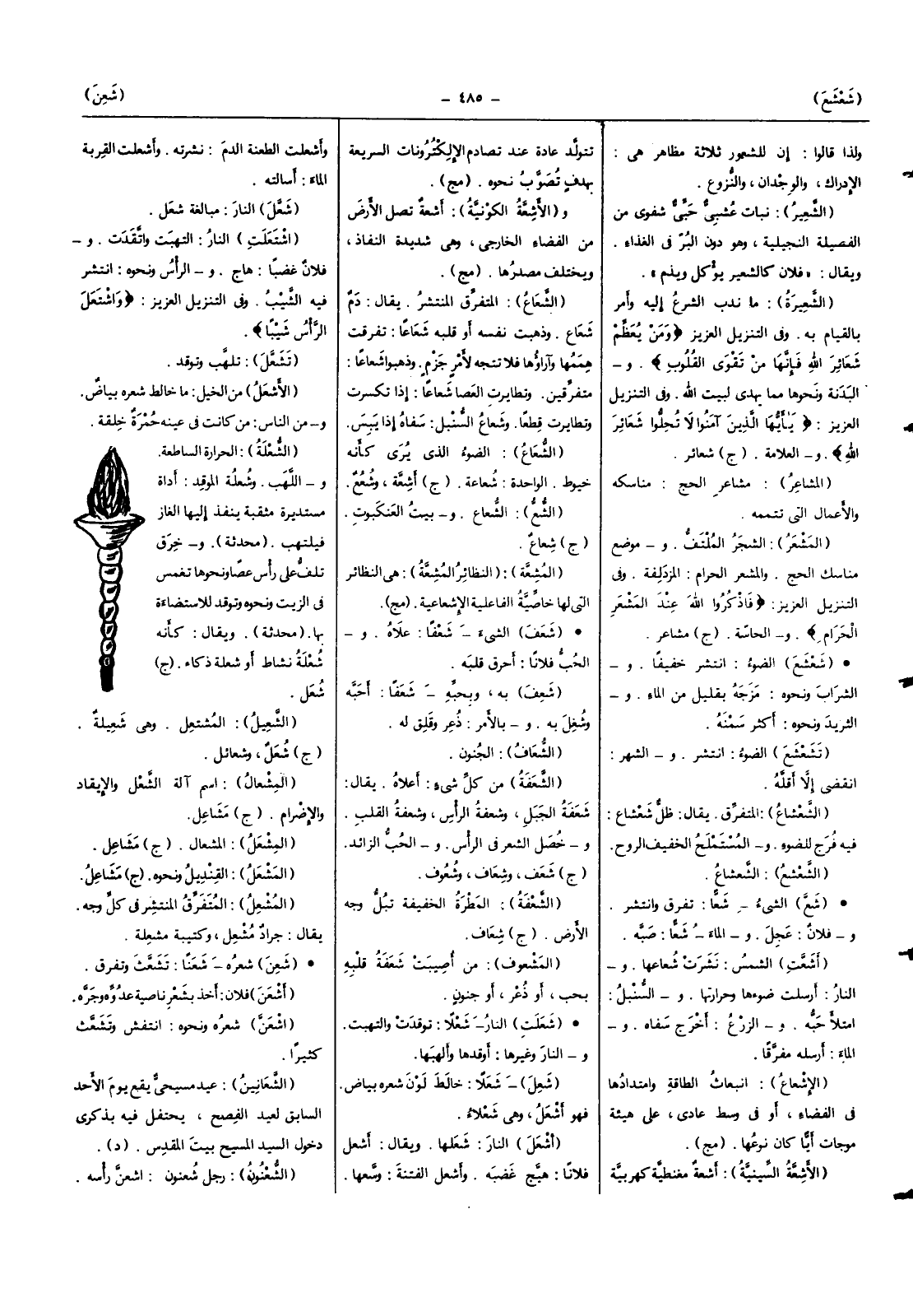 (الشعاع) الضَّوْء الَّذِي يرى كَأَنَّهُ خيوط الْوَاحِدَة شعاعة (ج) أشعة وشعع