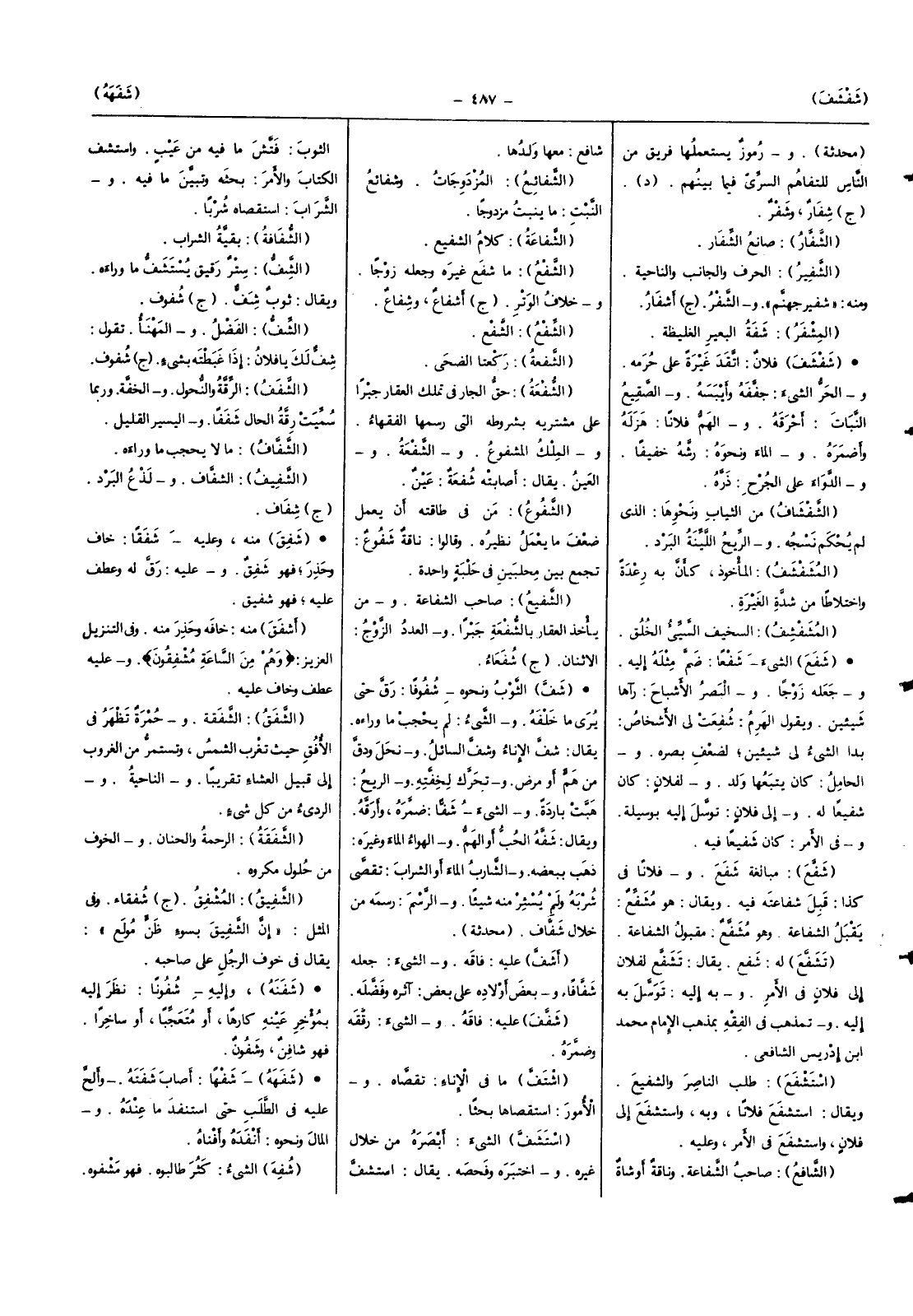 مِنْهُ وَعَلِيهِ شفقا خَافَ وحذر فَهُوَ شفق وَعَلِيهِ رق لَهُ وَعطف عَلَيْهِ فَهُوَ شفيق