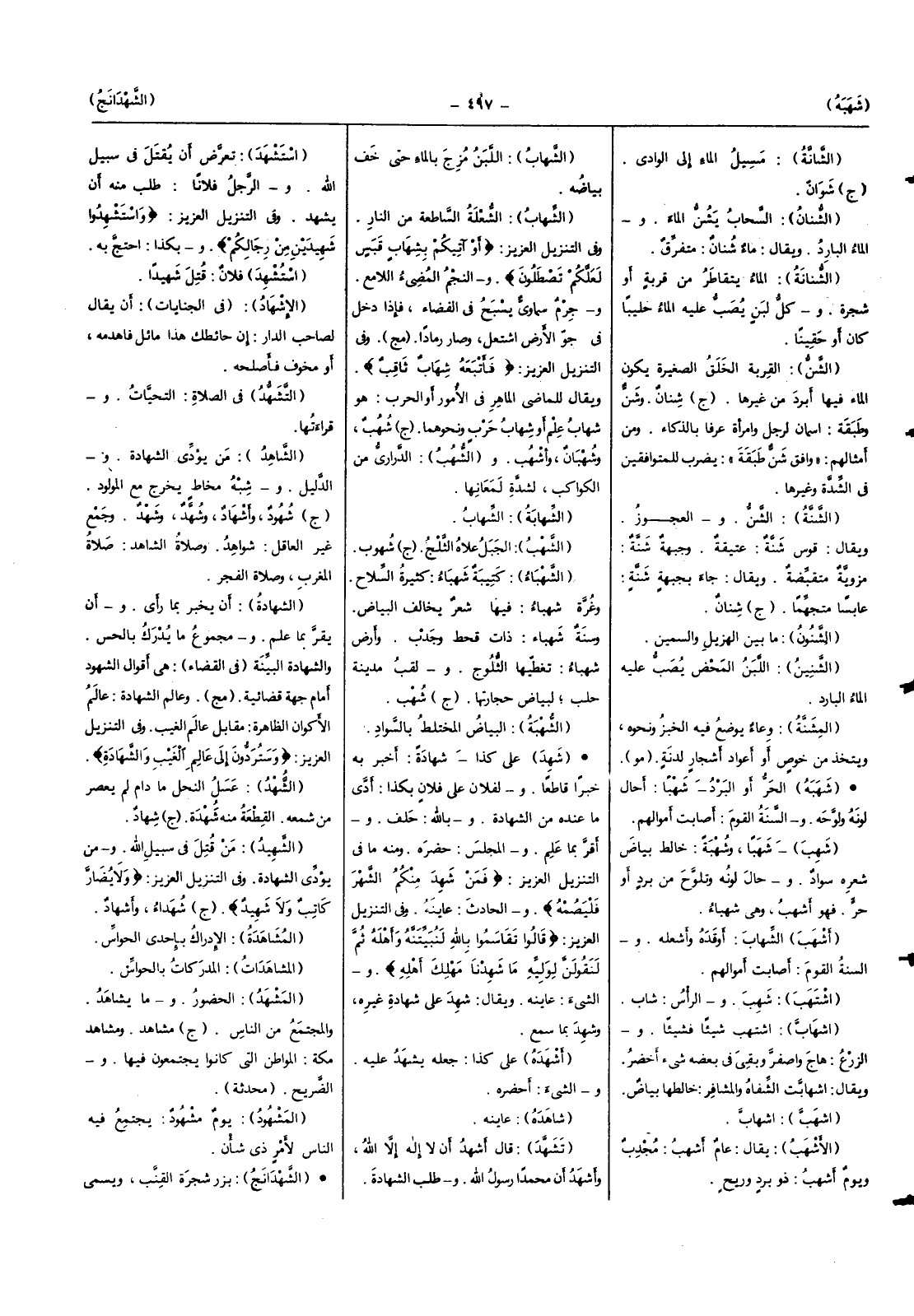 (الشَّهِيد) من قتل فِي سَبِيل الله وَمن يُؤَدِّي الشَّهَادَة وَفِي التَّنْزِيل الْعَزِيز {وَلَا يضار كَاتب وَلَا شَهِيد} (ج) شُهَدَاء وأشهاد
